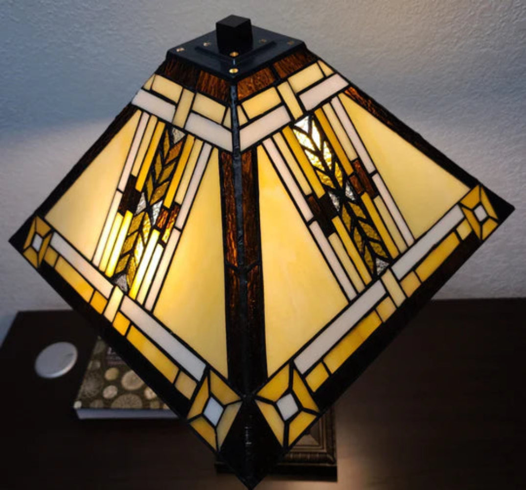 This Tiffany style lamp is hand-crafted using the same techniques that were developed by Louis Comfort Tiffany in the early 20th century. Each piece of glass is hand cut to the perfect shape and size, wrapped in copper foil, and soldered together to create a truly unique piece of art.
