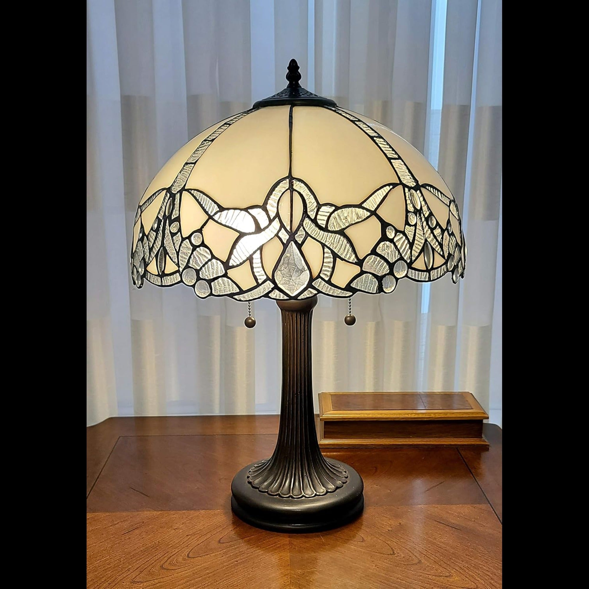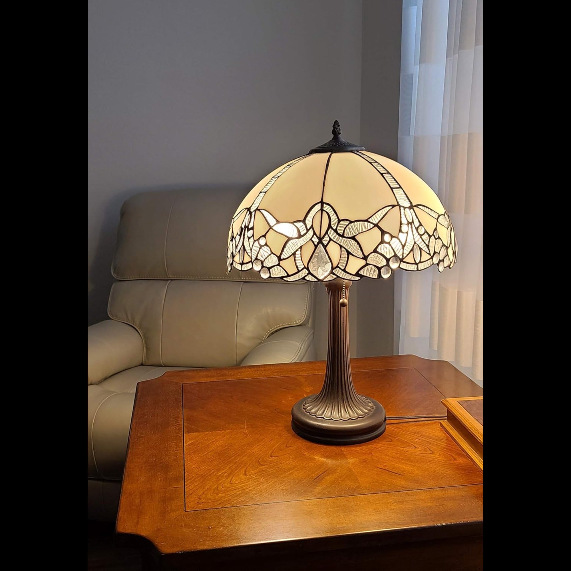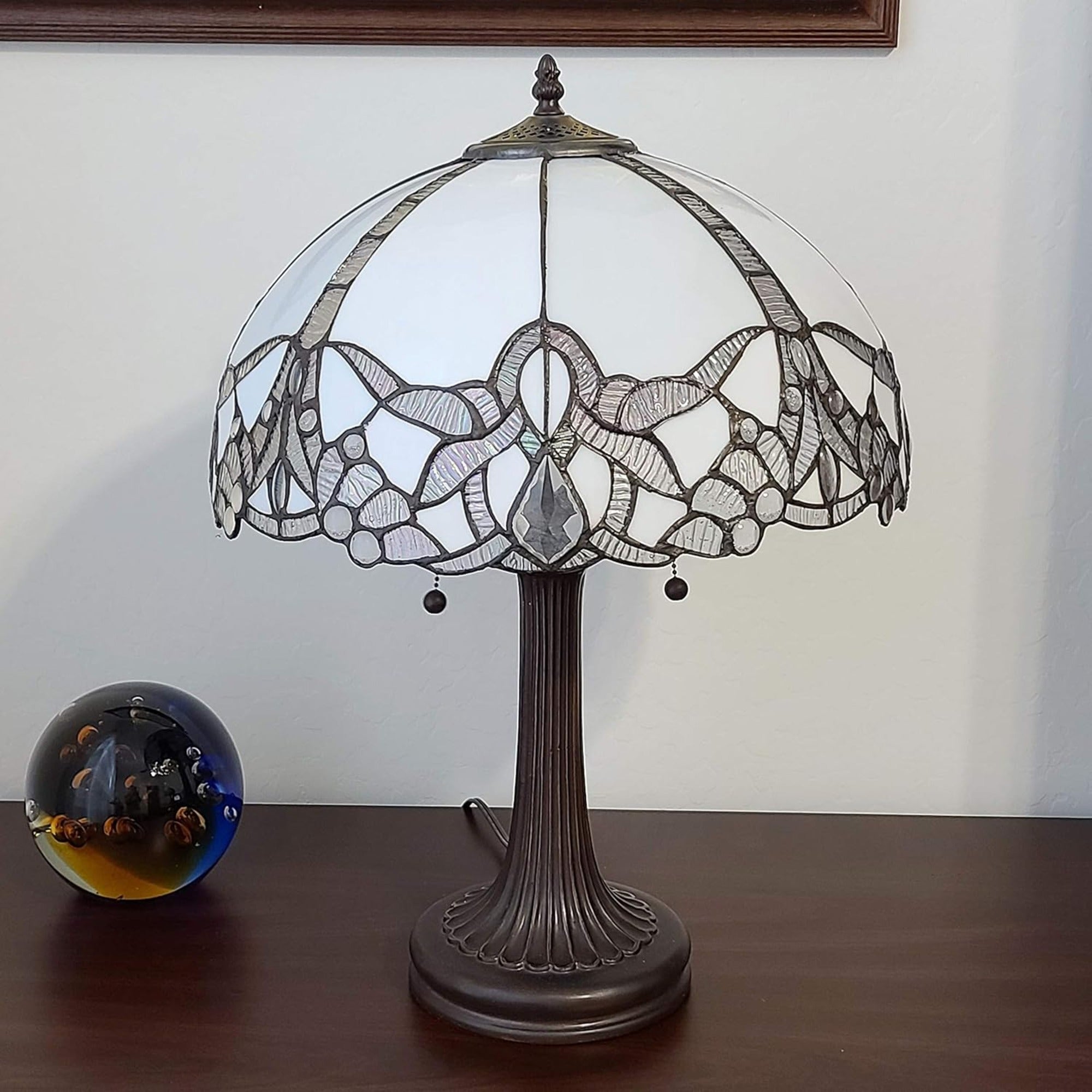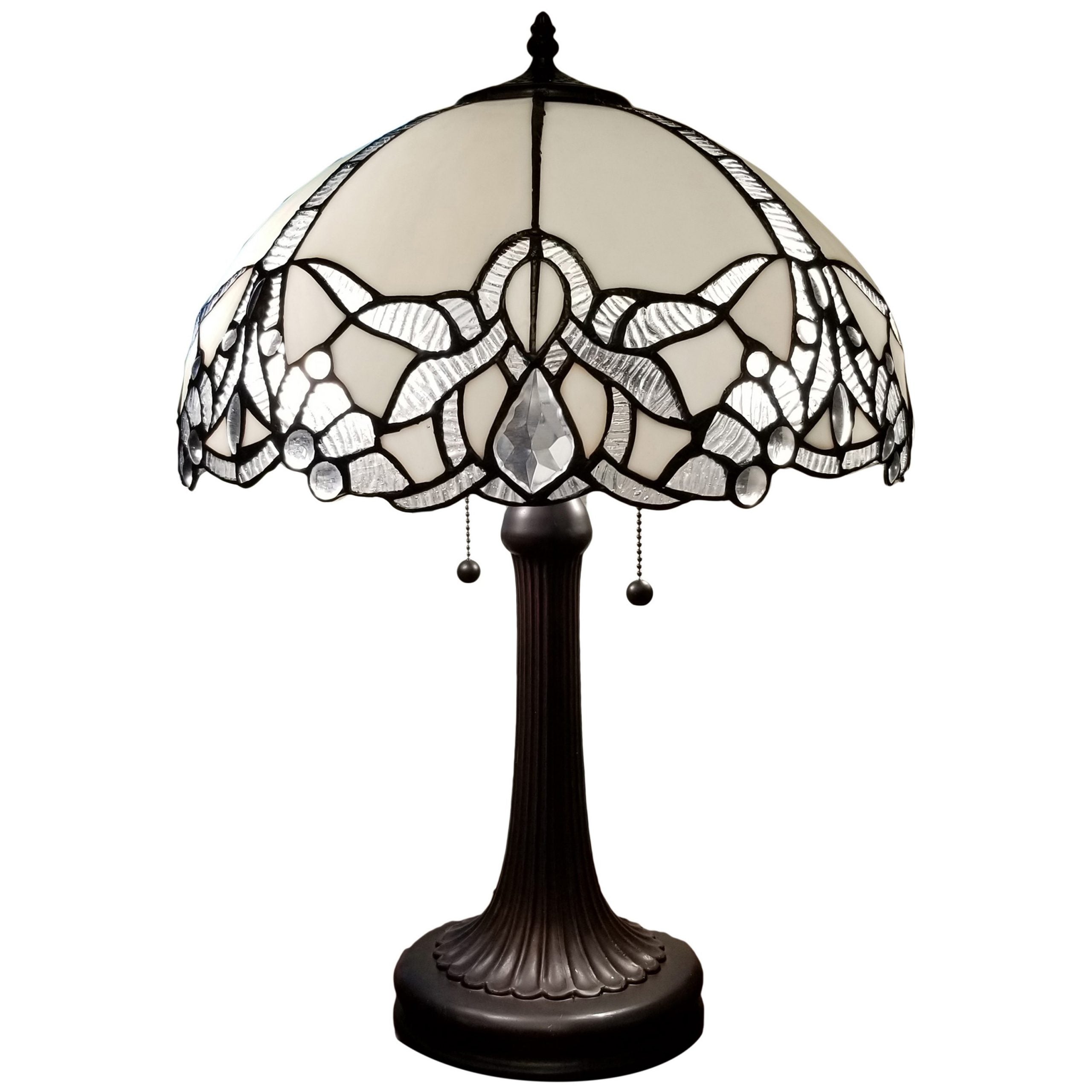 24 inch Tiffany lamp,Amora Lighting,Amora Lighting vintage style,Amora Tiffany jeweled table lamp,dark bronze table lamp,decorative jewel accent lamp,floral Tiffany lighting,Jeweled Table Lamp,romantic bedside lamp,Stylish Table Lamp,Table Lamps,white stained glass lamp,White Table Lamp,white Tiffany style lamp