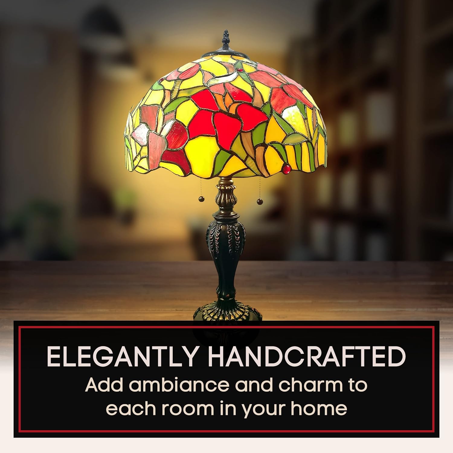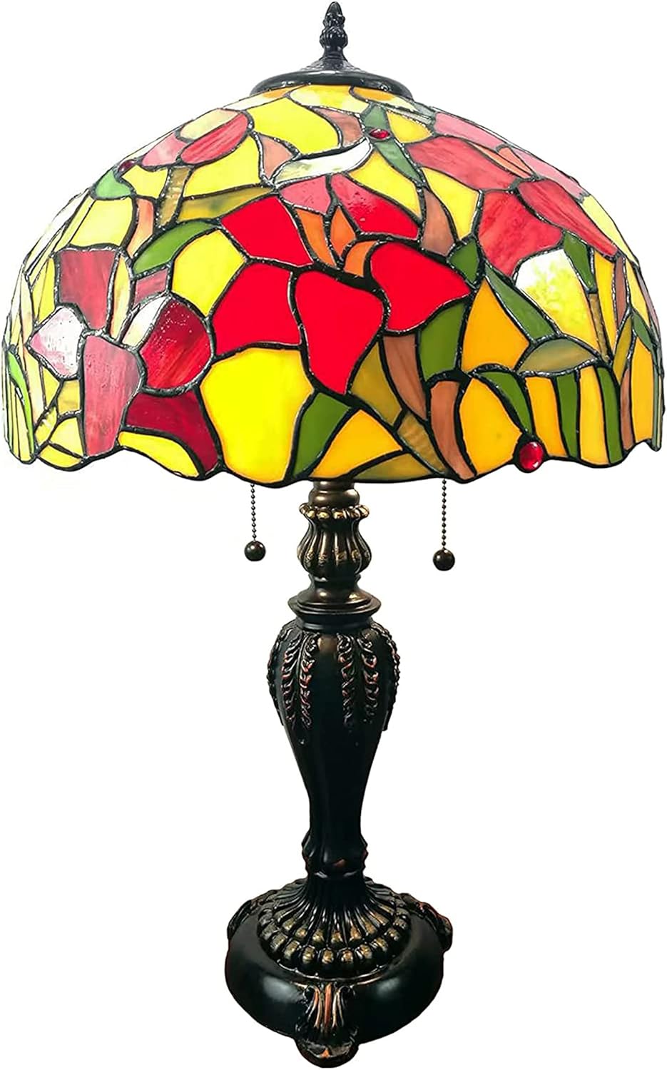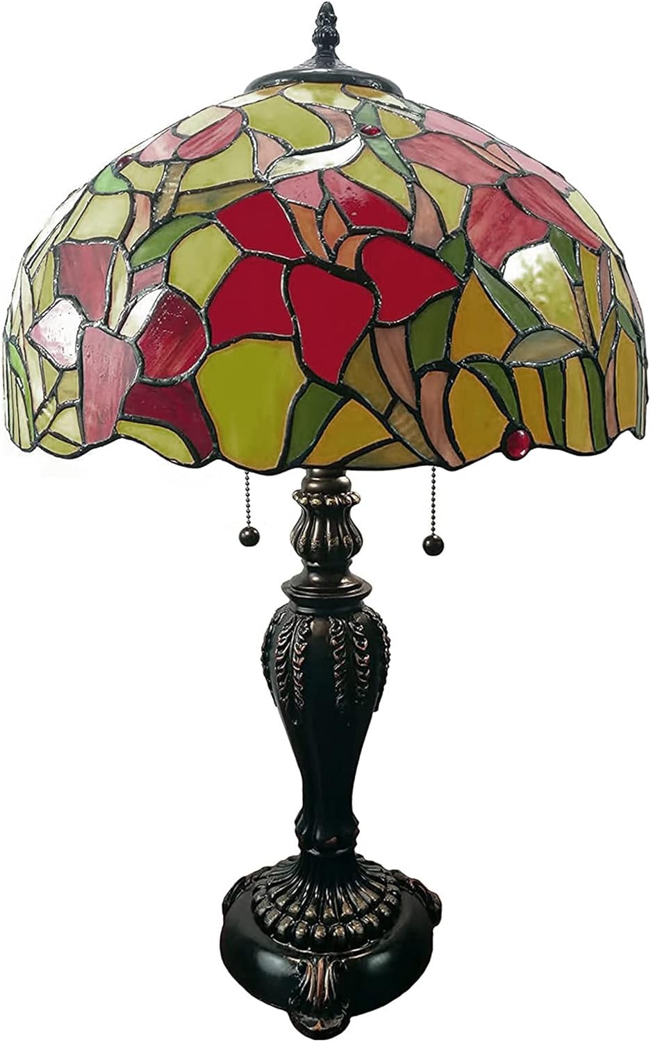 Tiffany Style 2 Light Roses and Floral Table Lamp 24" Tall