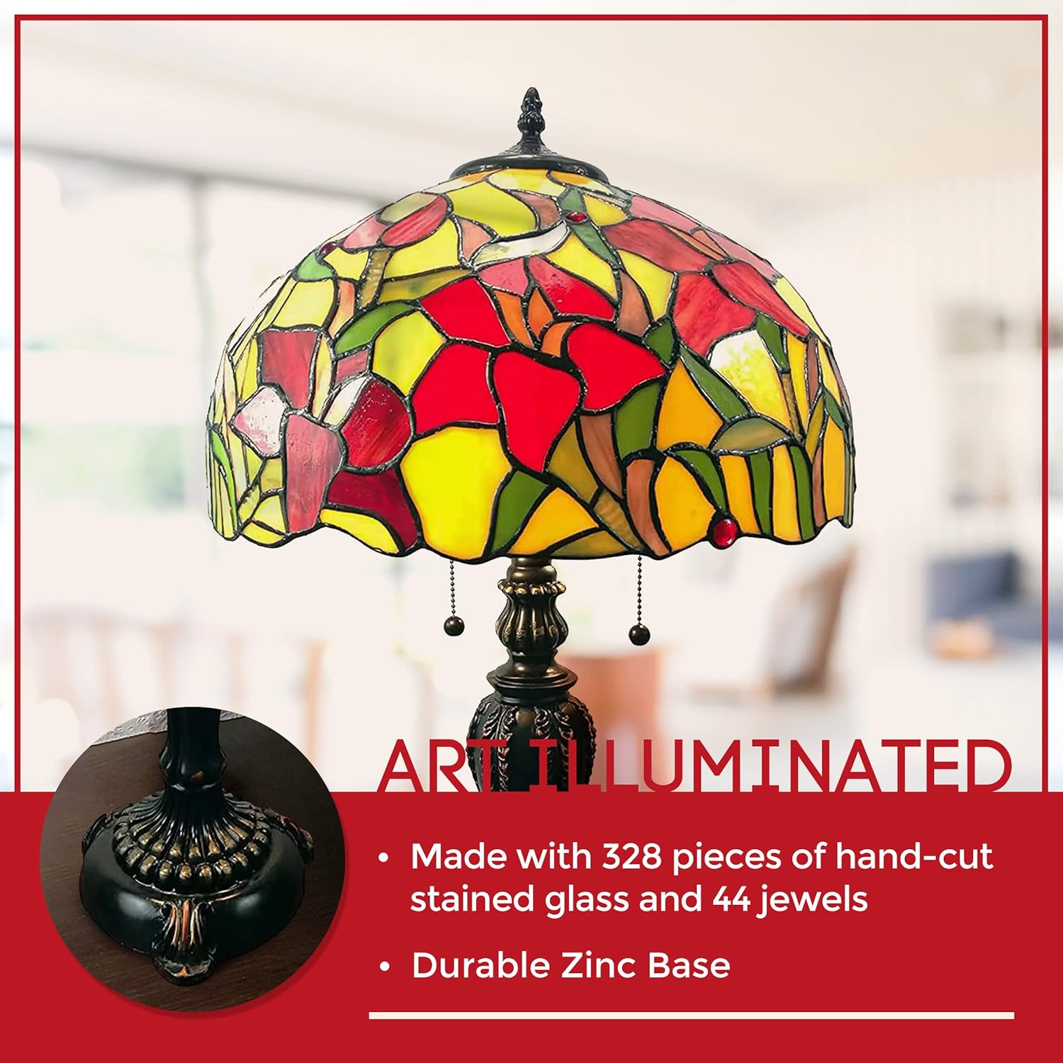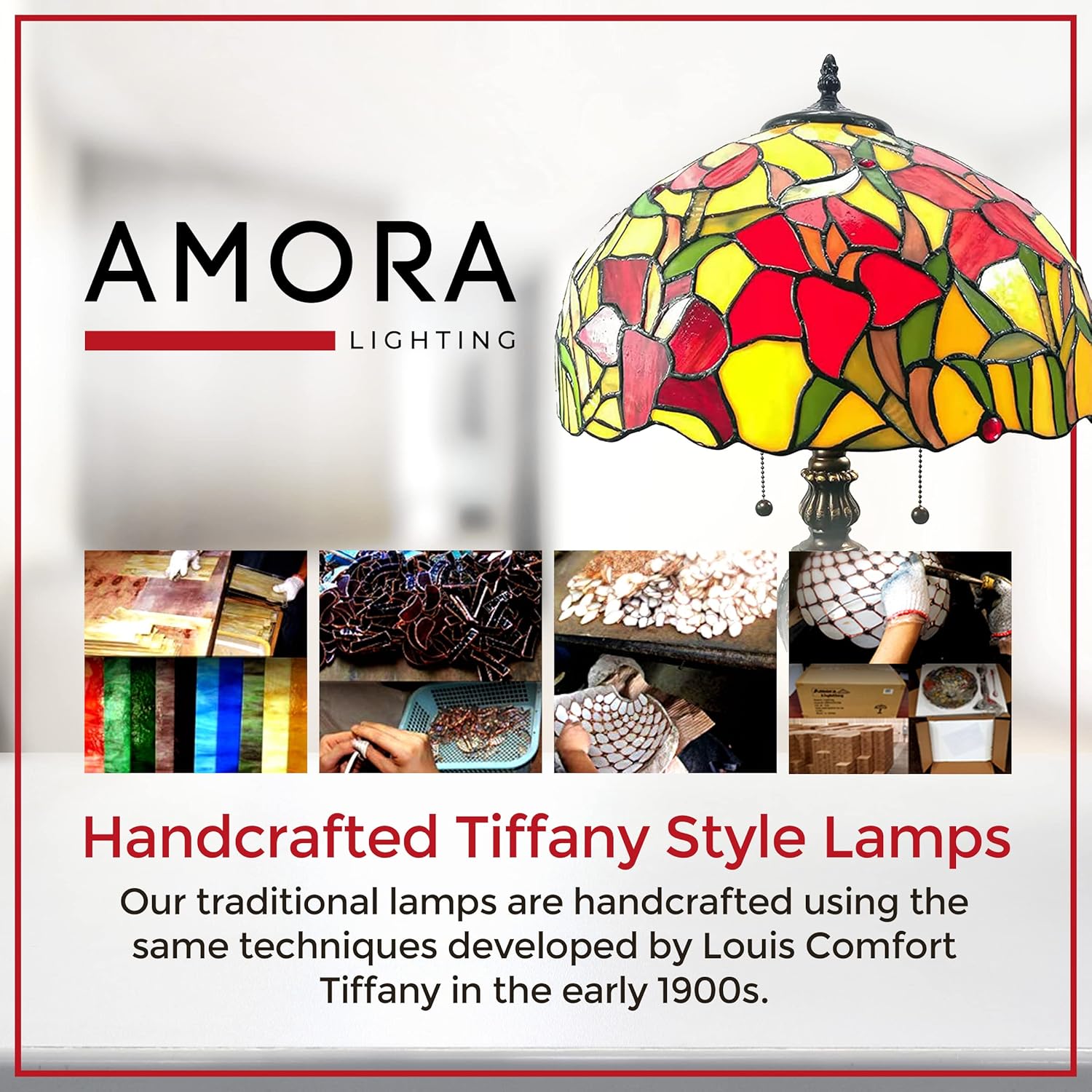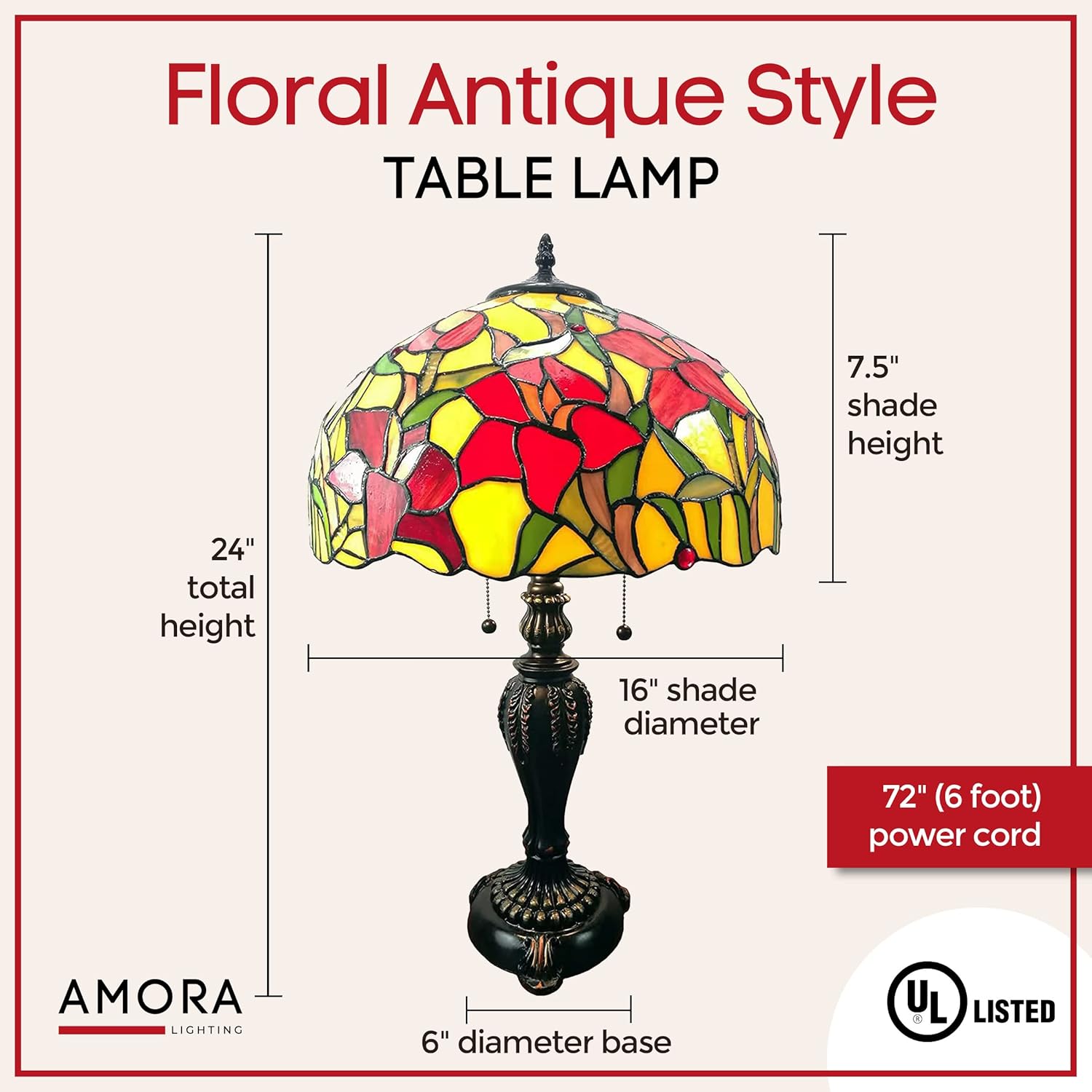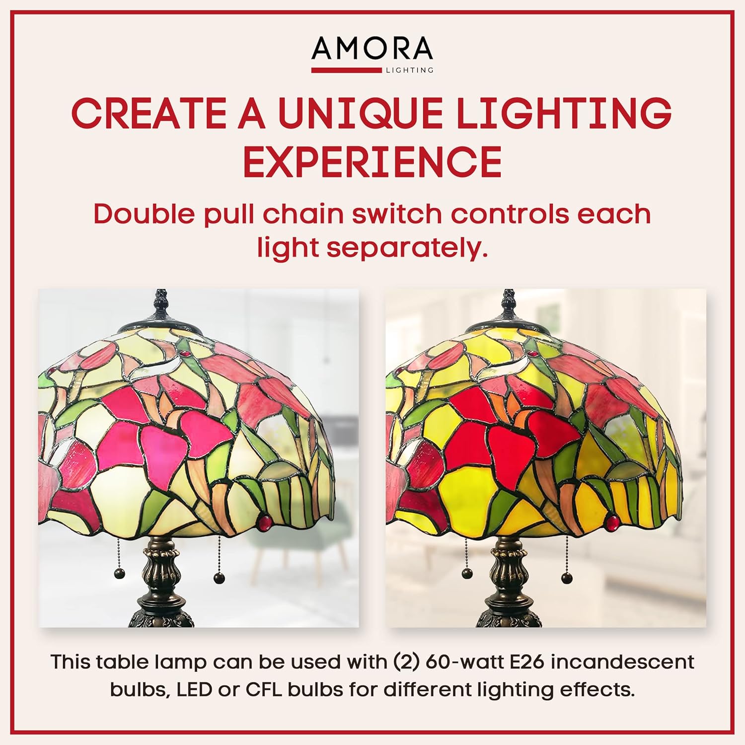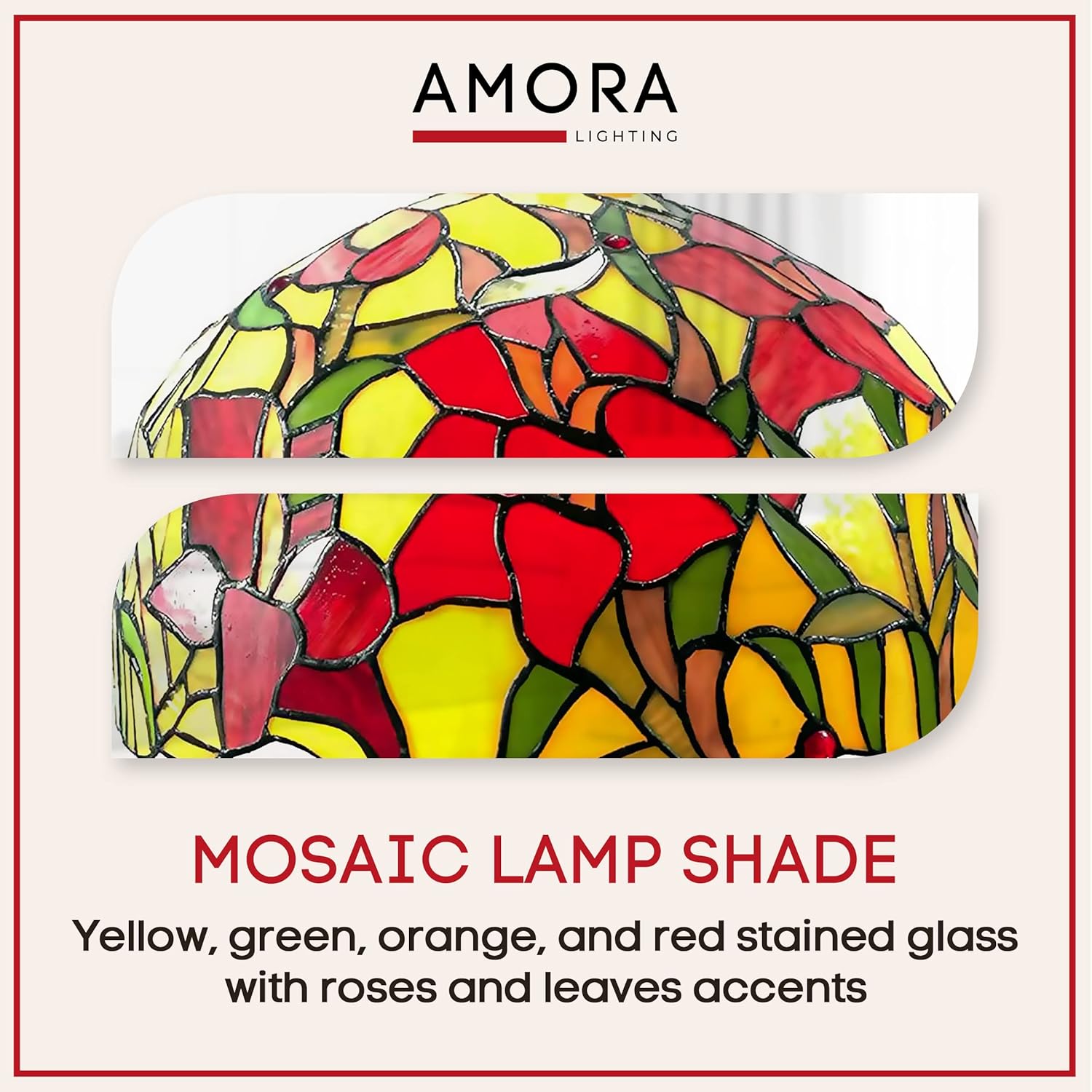 Amora Lighting Tiffany Style 2 Light Roses and Floral Table Lamp 24" Tall