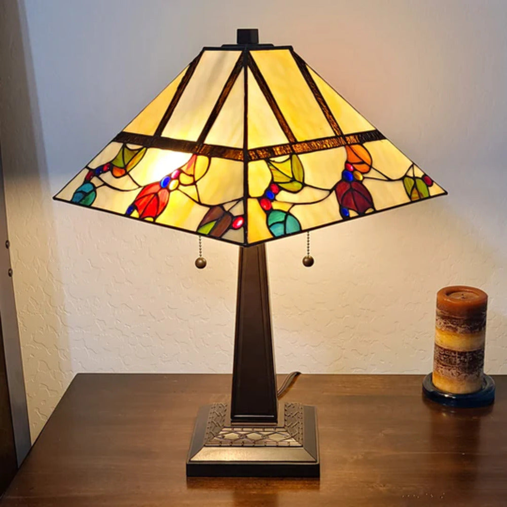 22 inch table lamp,Amora glass lamp,Amora Lighting,Amora mission table lamp,classic mission style light,handcrafted Tiffany lamp,Mission style bedside lamp,Mission Table Lamp,nature motif stained glass lamp,stained glass desk lamp,Stylish Table Lamp,Table Lamps,Tiffany Style,Tiffany style berries and leaves lamp,vintage table lighting