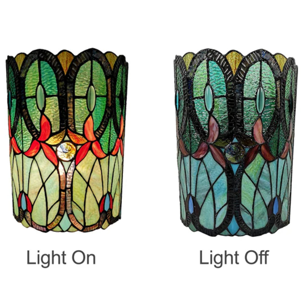13.5 inch vintage sconce,Amora floral wall sconce,Amora Lighting,Amora lighting fixture,Art Nouveau wall light,dual light decorative wall lamp,floral stained glass light,Floral Wall Sconce,Handcrafted Wall Sconce,stained glass wall sconce,Stylish Wall Sconce,Tiffany style double light wall lamp,Tiffany style lighting,Tiffany Style Wall Sconce,Wall Sconce