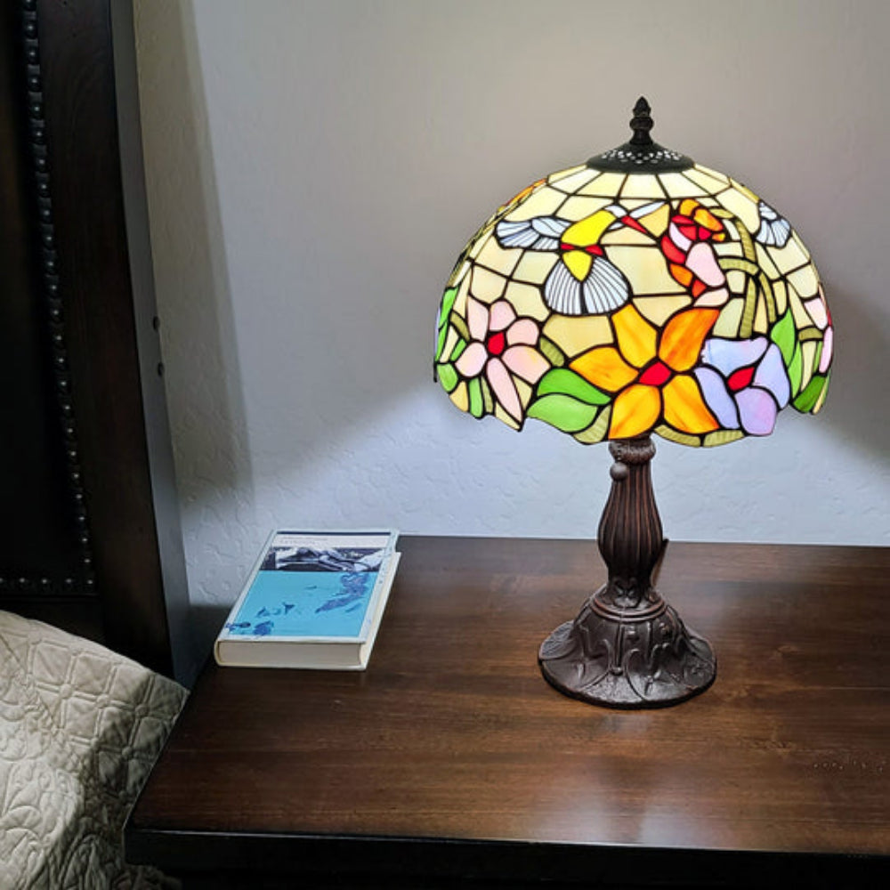 19 inch Tiffany style lamp,Amora Lighting,Amora Lighting hummingbird lamp,Amora stained glass light,floral stained glass table lamp,handcrafted Tiffany lamp,hummingbird bedside light,Hummingbird Design Lamp,indoor Table Lamp,nature themed Tiffany lamp,stained glass bird lamp,Stylish Table Lamp,Table Lamps,Tiffany hummingbird table lamp,Tiffany Style,vintage Tiffany bird lamp
