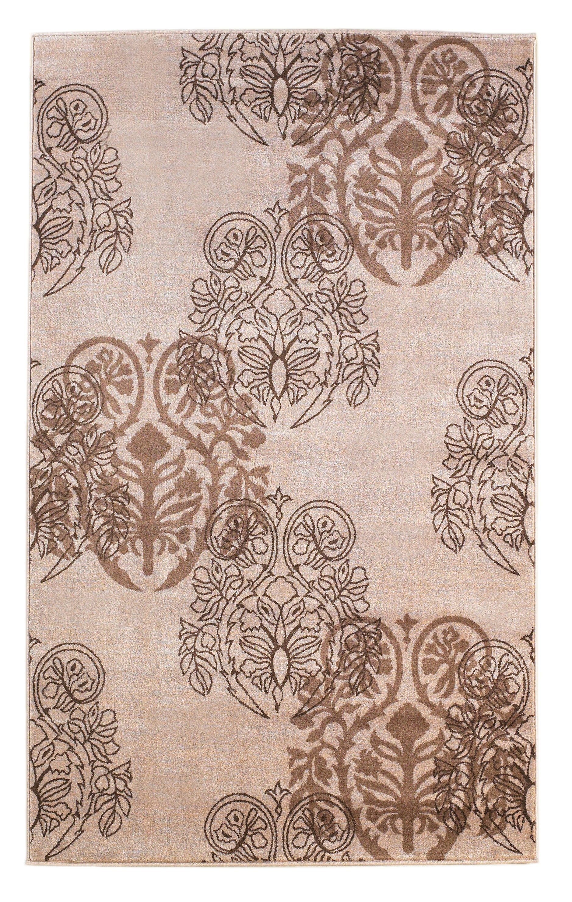 Benzara 7.7 x 5 Feet Damask Pattern Polypropylene Power Loomed Rug, Brown and Beige