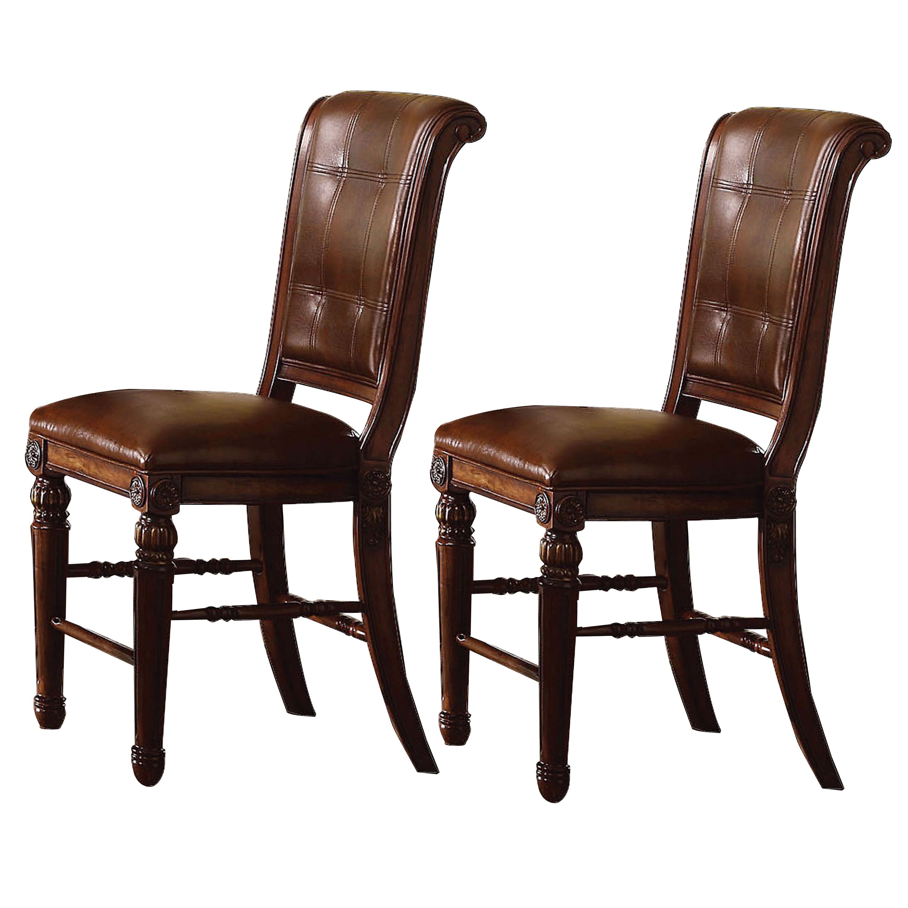Benzara Tufted Leatherette Counter Height Chair, Set of 2, Brown