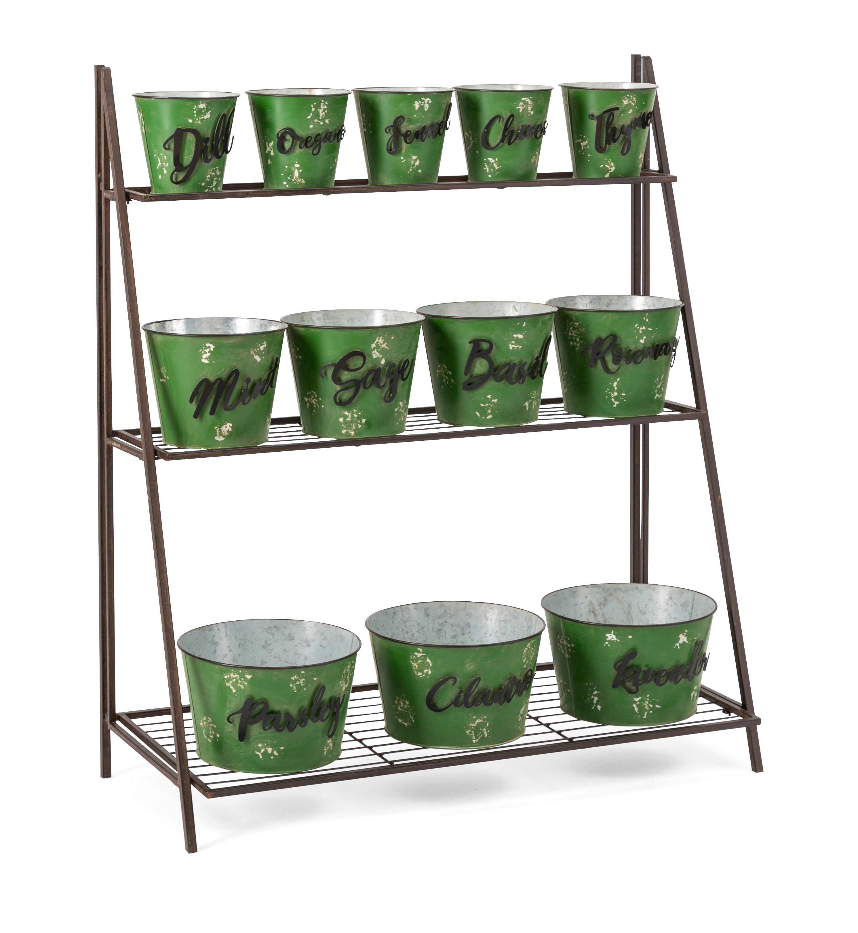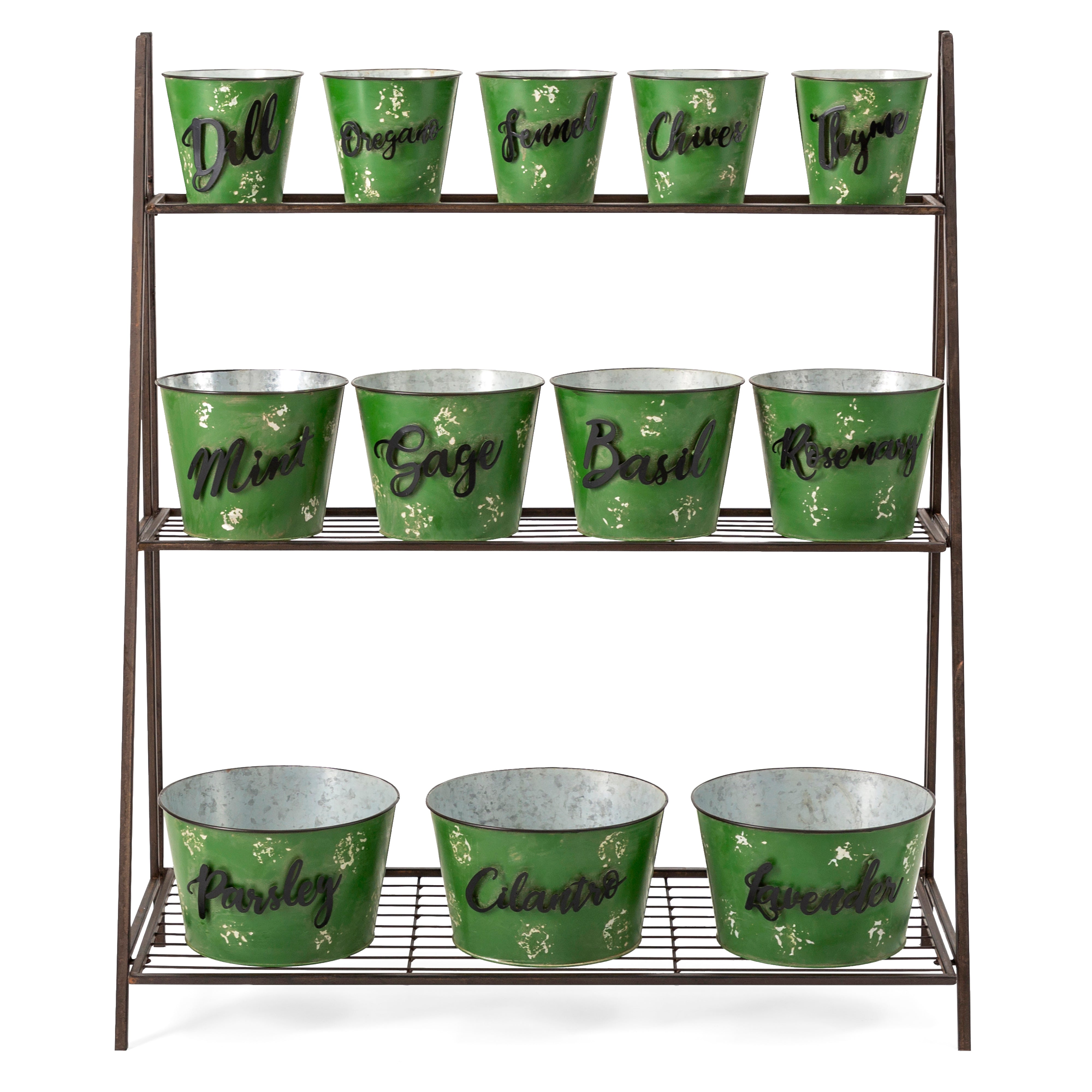 - Herb garden stand with thirteen labeled planters provides everything except the dirt and the plants