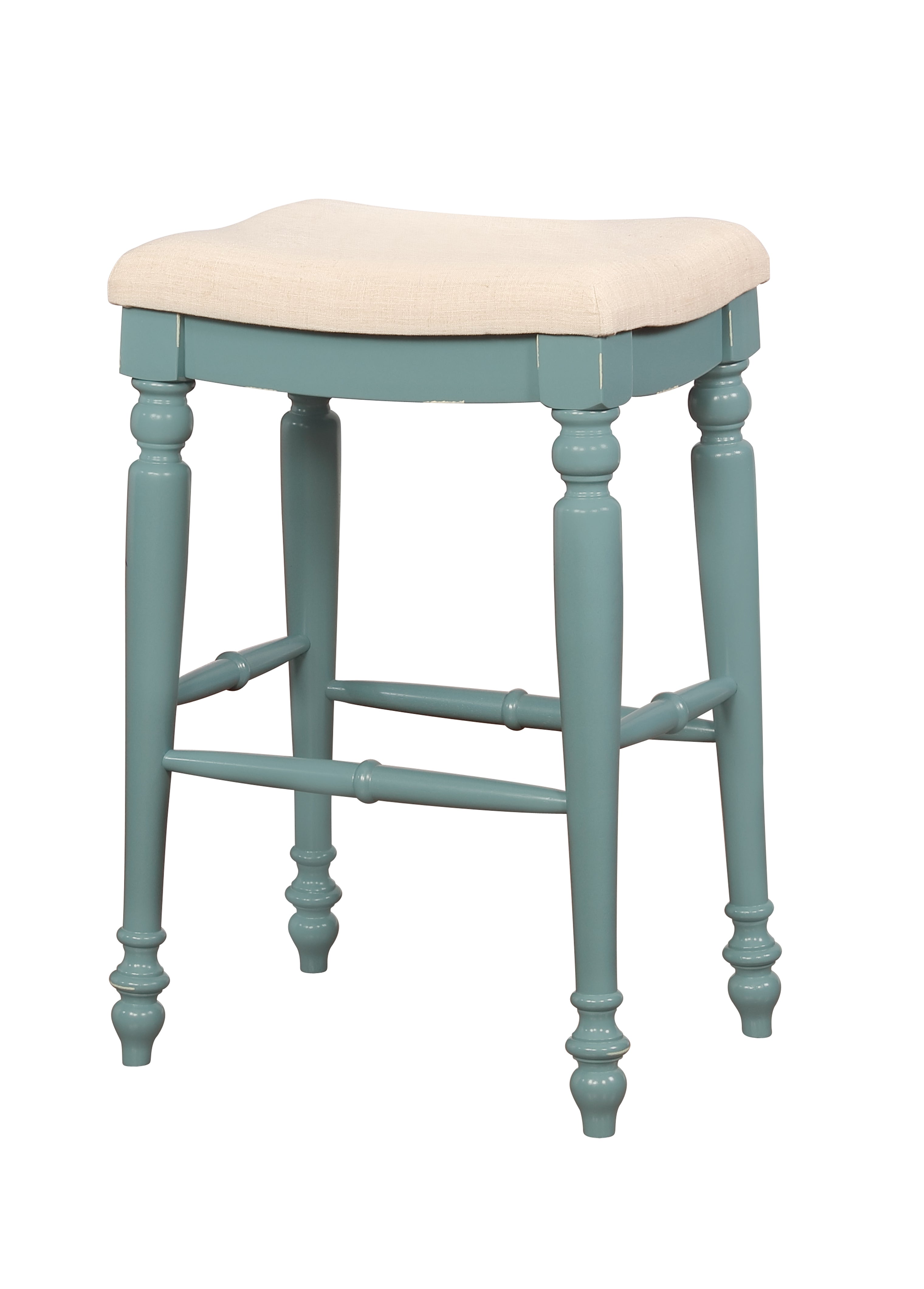 Update your home Decor with the addition of this bar stool which features a saddle seat with turned legs with footrest support for enhanced stability. It is made with a combination of solid wood and rubberwood in a teal blue finish with foam cushioned, beige fabric upholstered seat. It will be a great addition to your home and will find a perfect place alongside your kitchen island or bar counter.