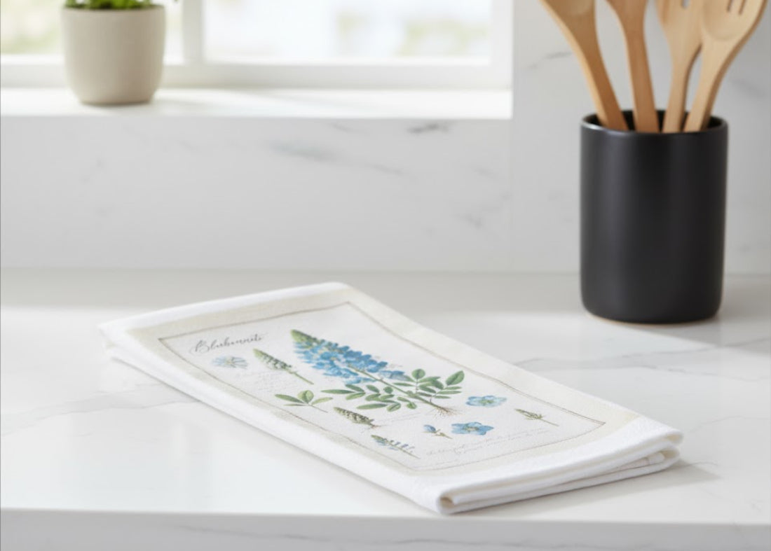 Add a touch of floral beauty to your home with the Bluebonnets I Terry Hand Towel. Made from 100% cotton, this 18x28-inch towel offers both absorbency and softness for everyday use. The charming Bluebonnets floral design brings a refreshing, nature-inspired accent to your kitchen or bathroom décor. Crafted with a durable terry weave, it’s gentle on skin while effectively drying hands and surfaces. Easy to wash and maintain, this towel combines practicality with timeless style. Ideal for daily use or as a thoughtful gift, the Bluebonnets I Hand Towel enhances your space with both function and floral elegance.