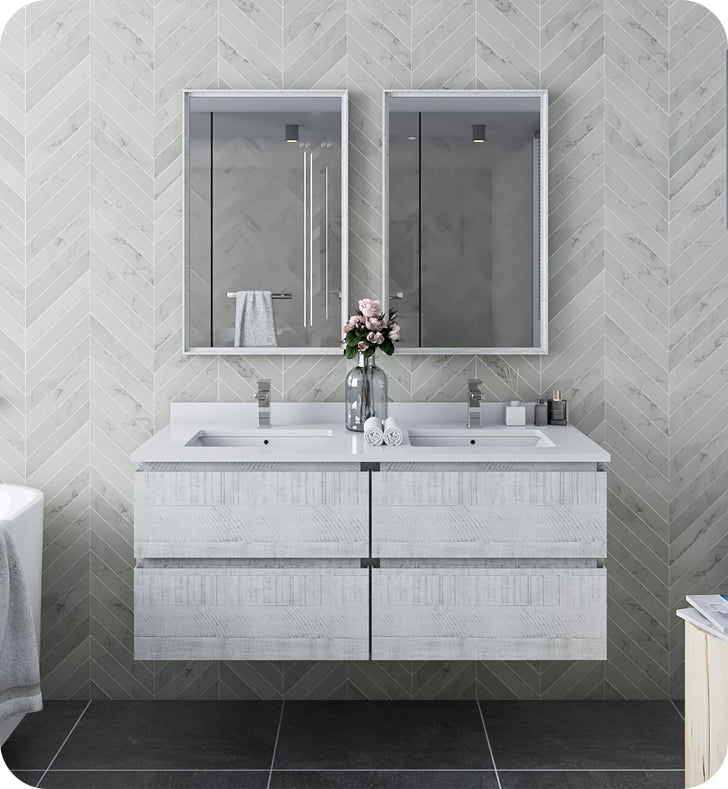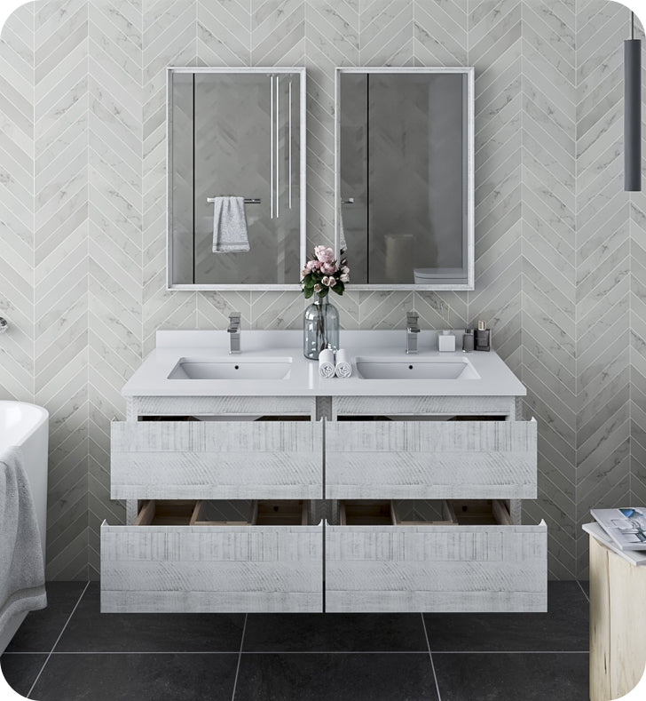 Fresca FVN31-2424RWH Formosa 48" Wall Hung Double Sink Modern Bathroom Vanity