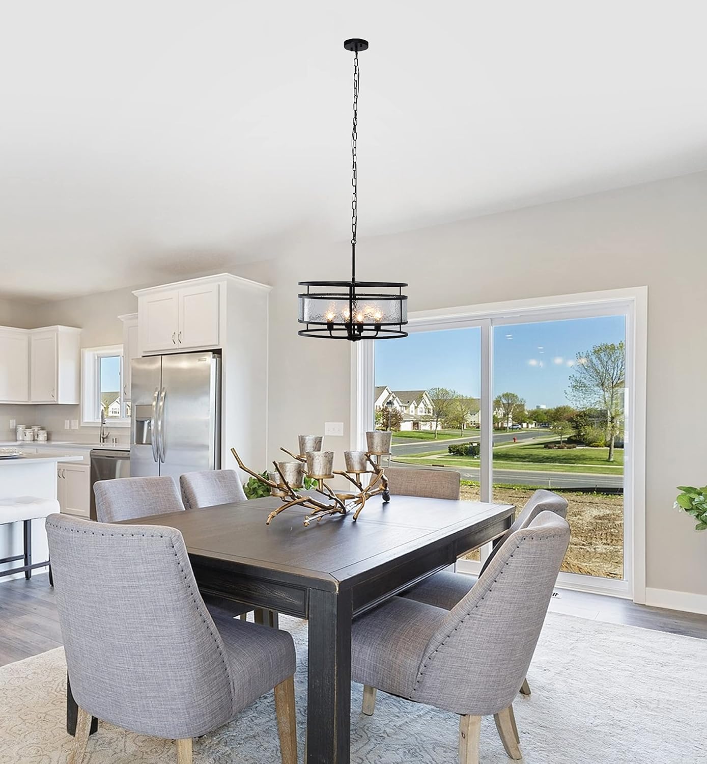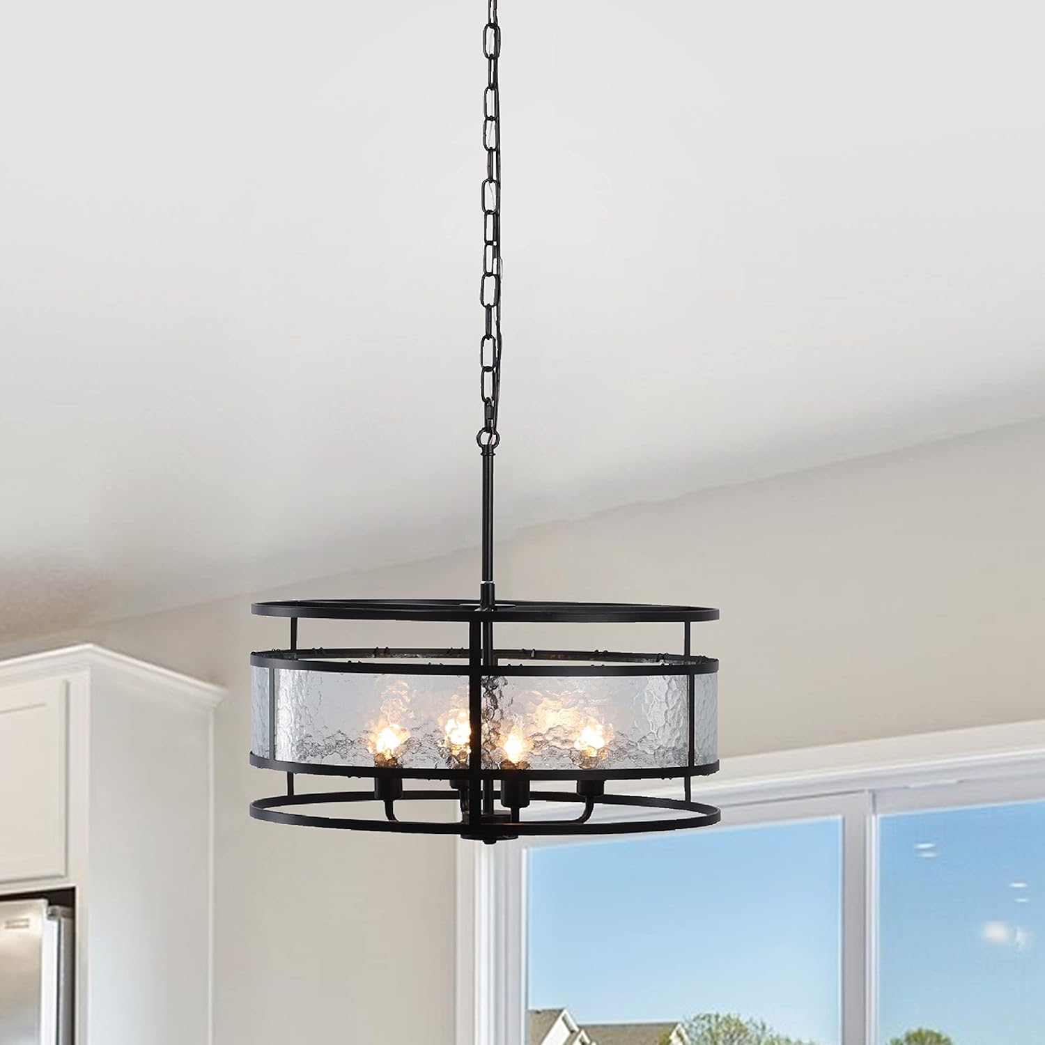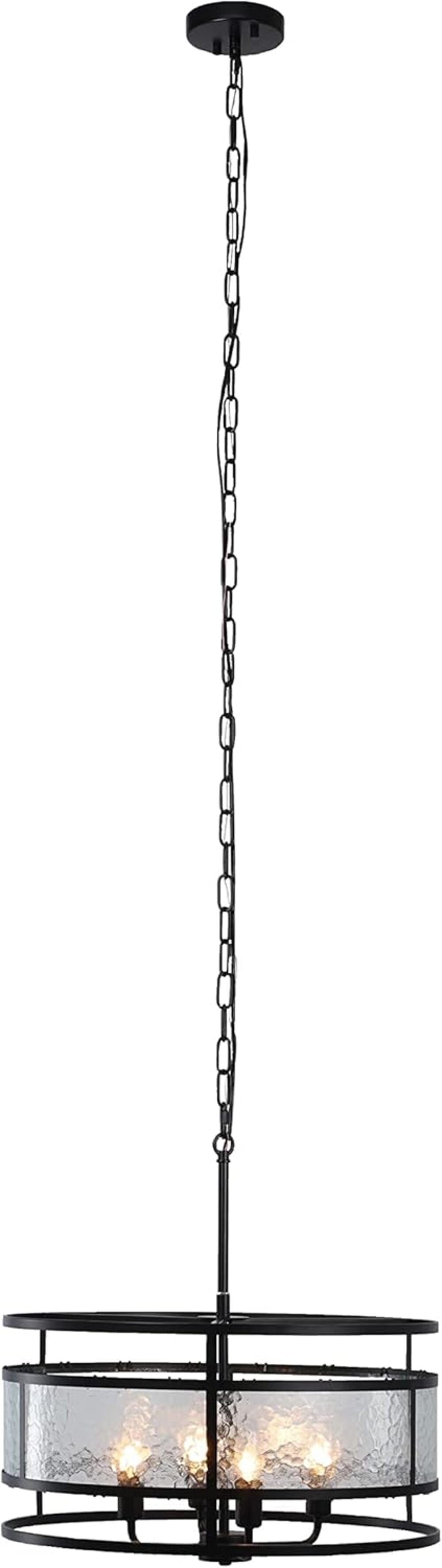 Sienna is a contemporary style 20 inch wide hanging ceiling pendant, and it is calling your name! This pendant features a beautiful water glass shade, encapsulating five bulbs. The overall fixture is in a matt black finish. The fixture takes four 60W E12 bulbs and is compatible with incandescent, flourescent, and LED bulbs. Also, the open shade make light bulb changes a breeze. This fixture is UL listed, and dry listed for indoor use. Also, this sconce is recommended for both residential and non-residential use!