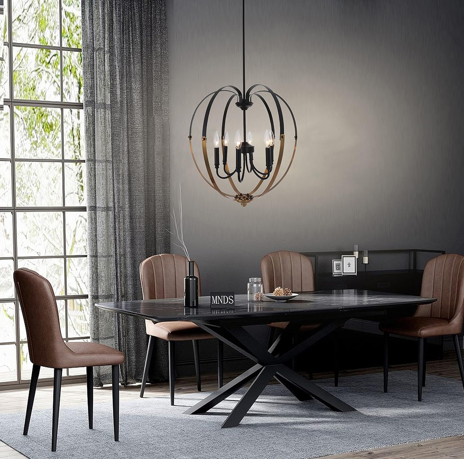 Winona is a gorgeous, matt black and antique brass finish, transitional-style 6 light hanging pendant, and it would be perfect focal point in any room! It takes six 60W E26 bulbs (not included), is compatible with fluorescent, incandescent, and LED bulbs, and would a perfect fit in the livingroom, diningroom, hallway, den and foyer! This fixture is dry listed and UL listed, and not recommended for damp/wet locations. Recommended for residential and commercial use.