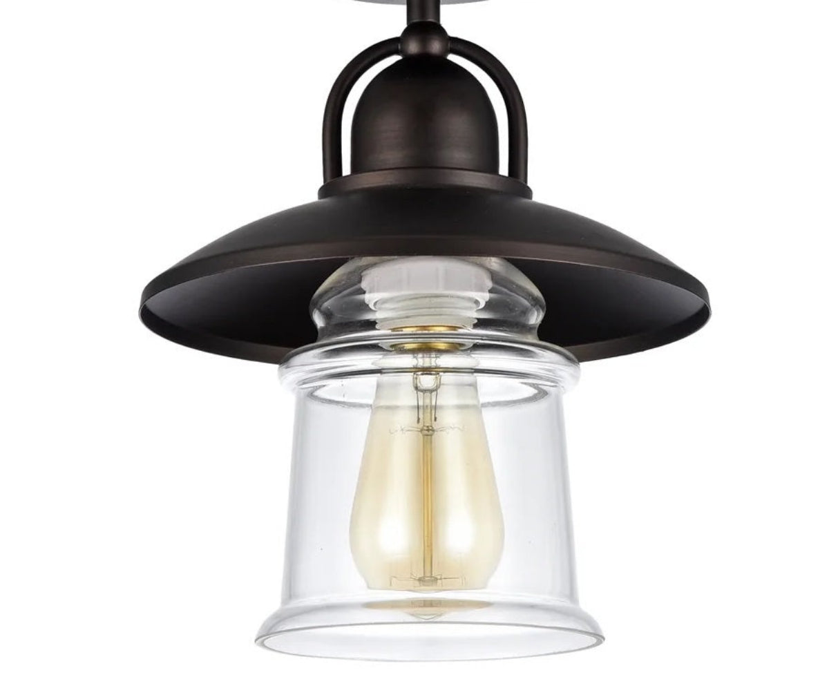 Chloe Lighting CH54051RB09-SF1 Manette Industrial-Style 1 Light Rubbed Bronze Semi-Flush Ceiling Fixture 9`` Shade