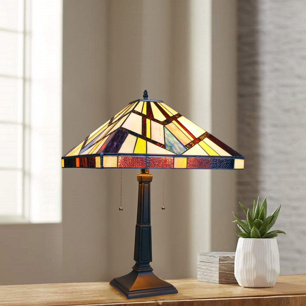Chloe Lighting Vincent Tiffany-Style 2-Light Mission Table Lamp 16" Shade