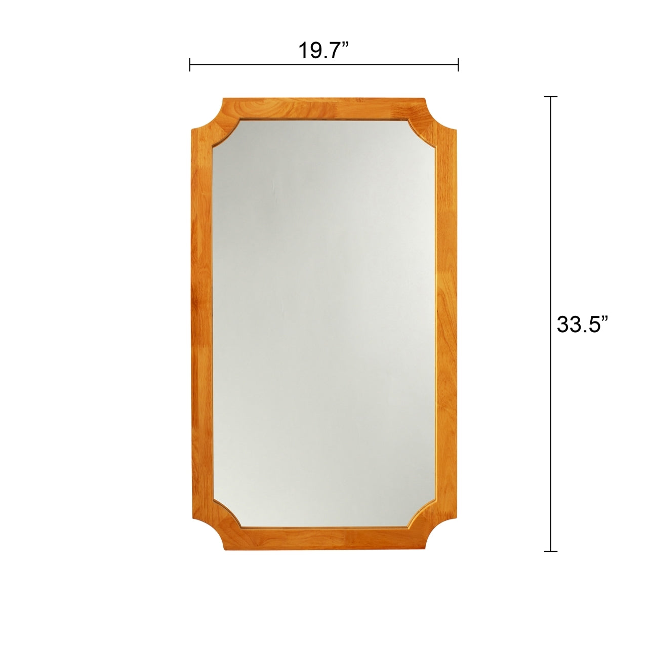 Enhance your space with the Chloe's Reflection Maple Finish Rectangular Framed Wall Mirror. Standing at 33 inches tall and 20 inches wide, this mirror features a sleek, rectangular design with a warm maple wood finish. Its clean lines and minimalist aesthetic make it a versatile addition to various interior styles, from modern to traditional. Perfect for entryways, bathrooms, or living areas, this mirror not only serves as a functional piece but also adds a touch of elegance to your home decor.