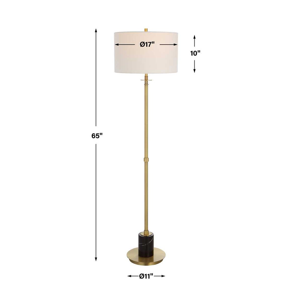 Uttermost Guard Floor Lamp – 65"H Iron with Antiqued Brass Finish and Black Marble Column with White Drum Shade