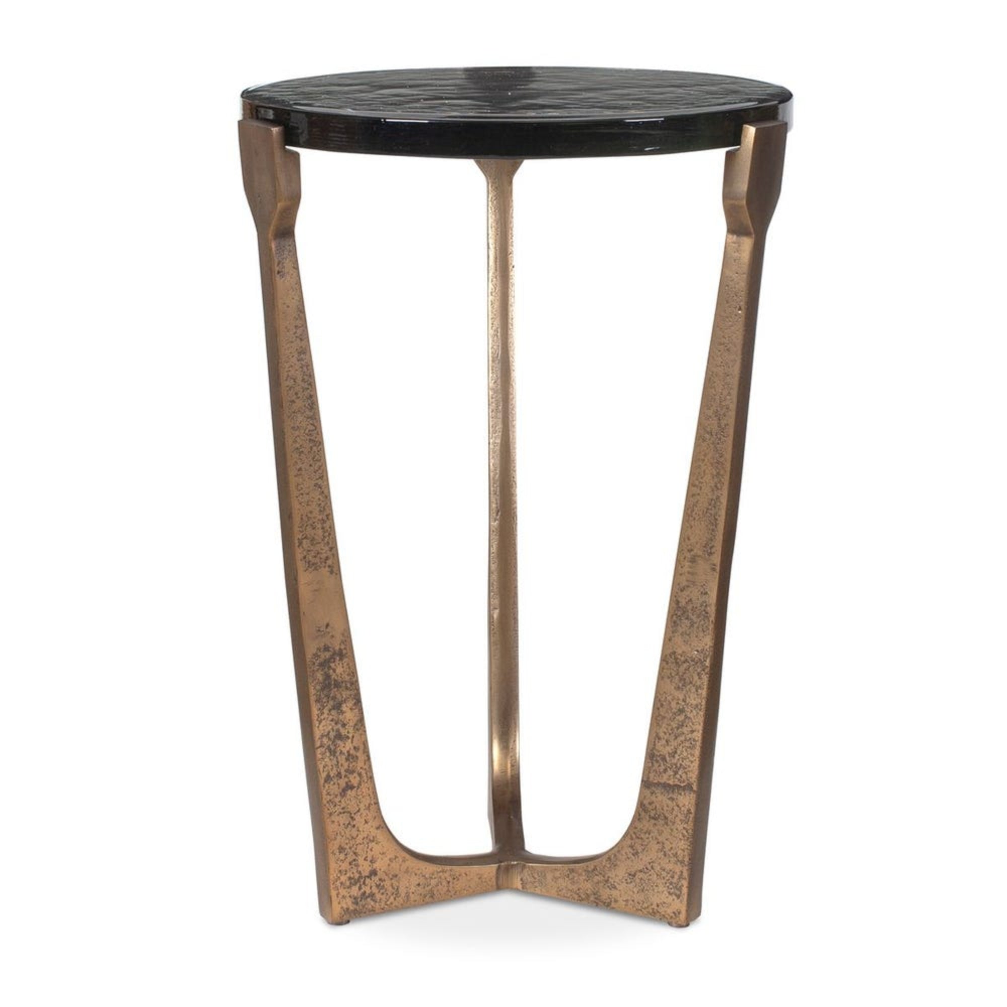 SKU - UT50216Bohdi Outdoor Accent Table-Luxurious Antique Brass and Textured Glass Design