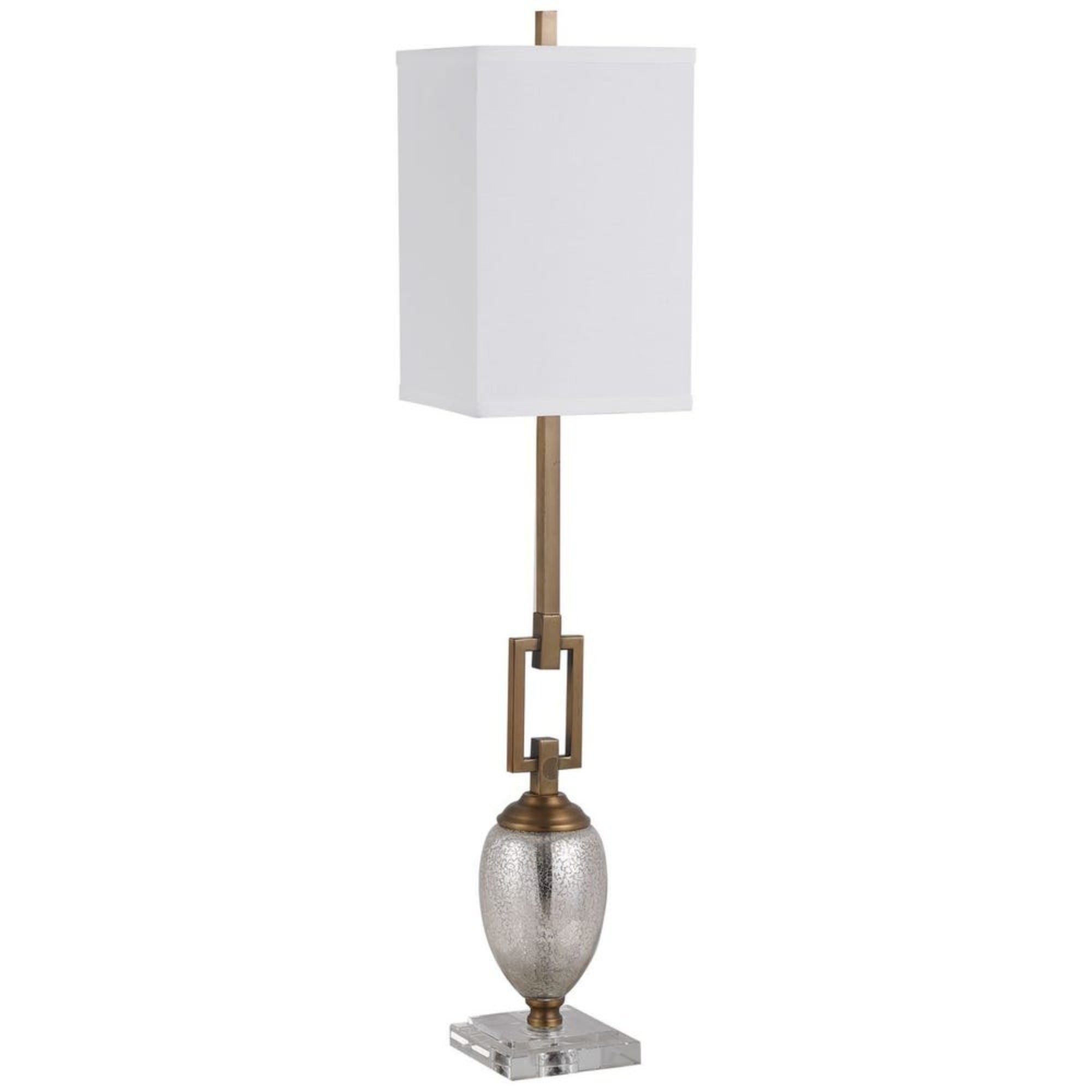 SKU - UT29338-1Copeland Mercury Glass Buffet Lamp – Coffee Bronze Accents with Crystal Foot and Off-White Linen Shade