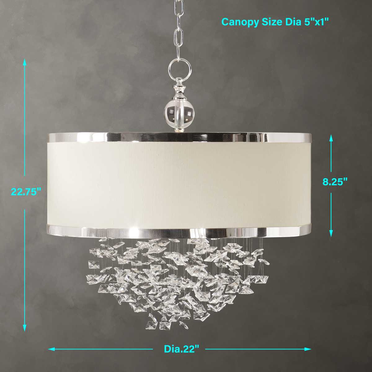 SKU - UT21908Fascination 3-Light Hanging Shade Chandelier – Antique White Linen Drum with Crystal Accents, 22" Wide