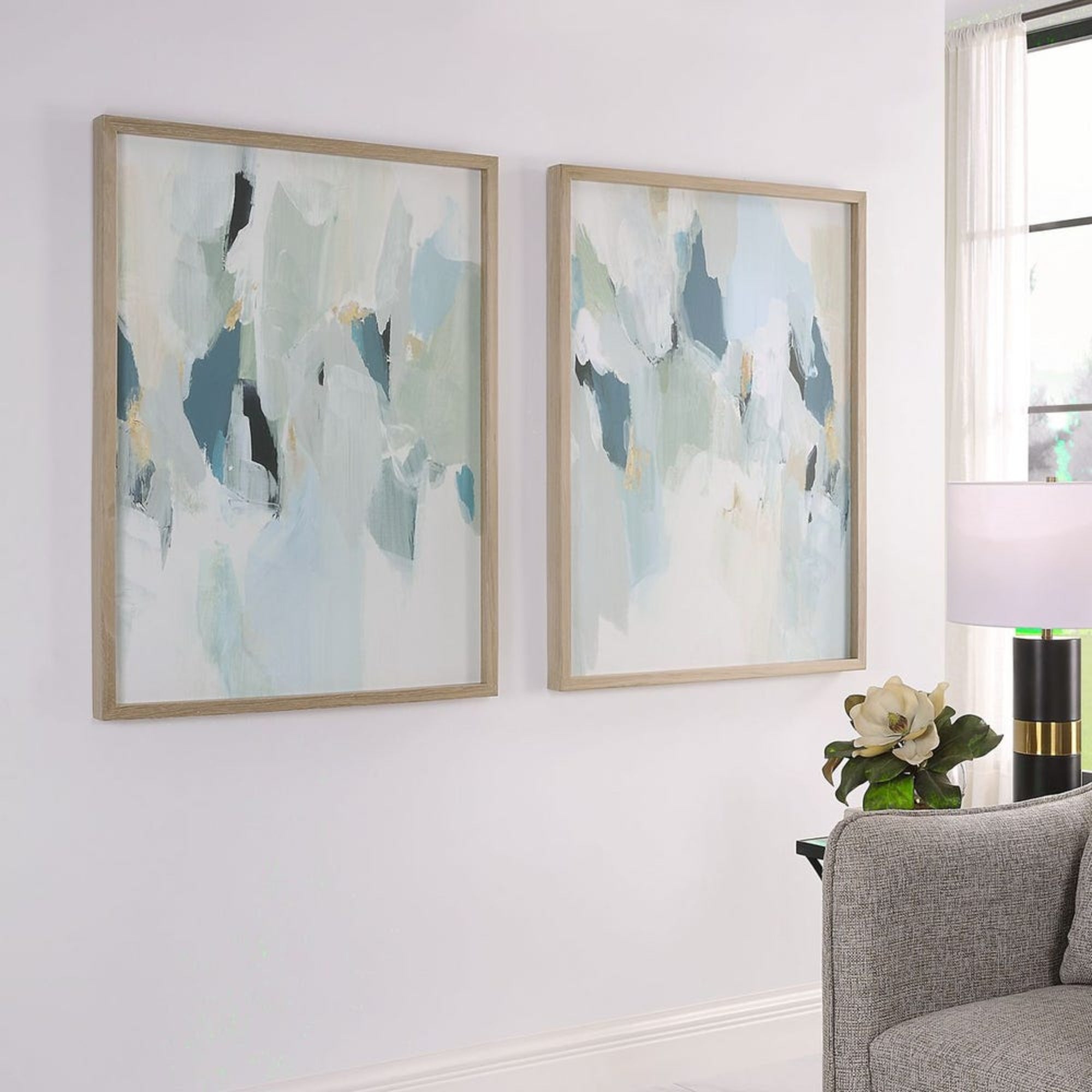 Seabreeze Framed Canvas Print-Gray Washed Pine Frame for Coastal Feel, Set of 2