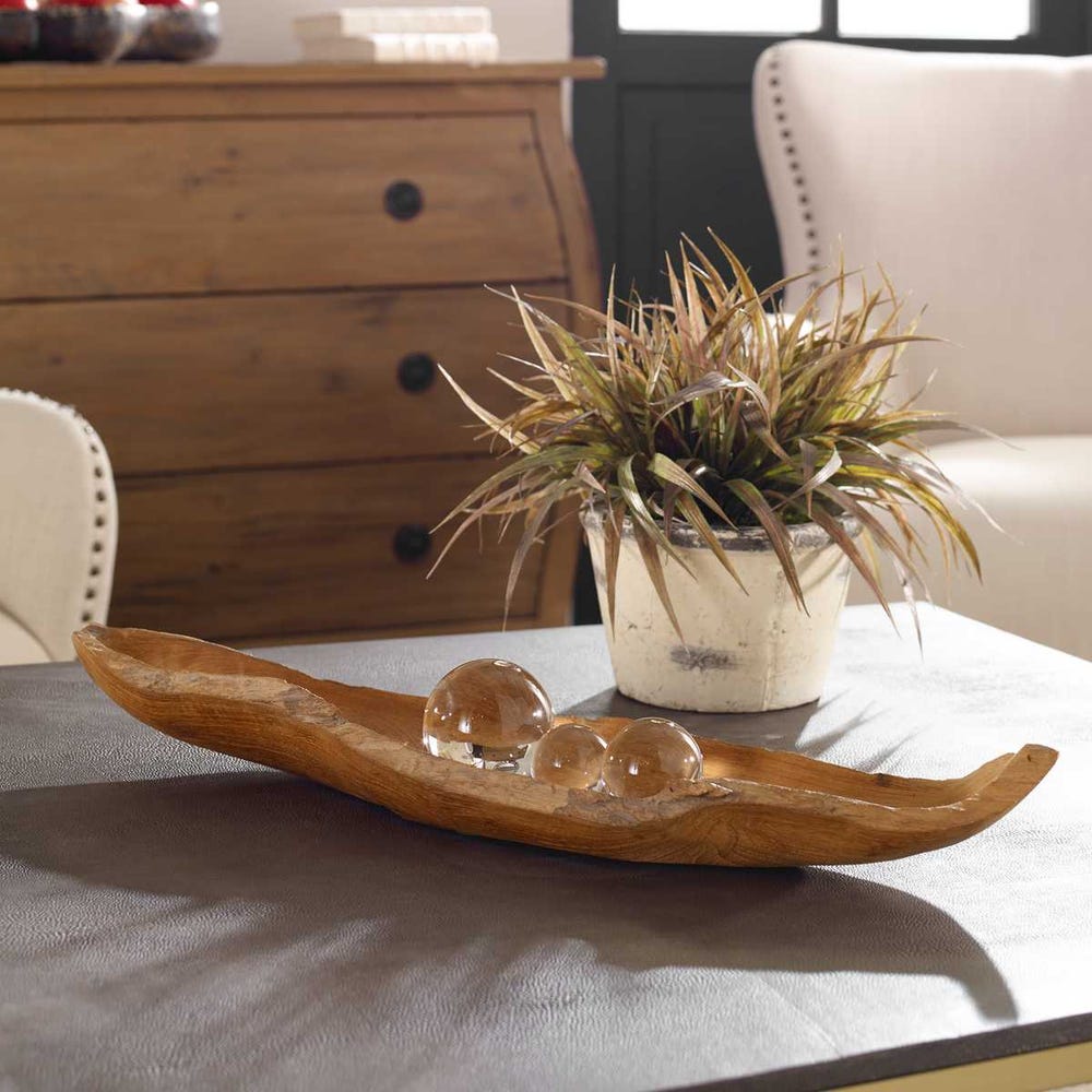 Uttermost Teak Leaf Bowl – Handcrafted Natural Teak Wood, 9.75"D × 4.75"H, Indoor & Outdoor
