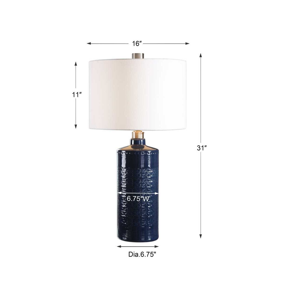 Uttermost Thalia Royal Blue Table Lamp – 31" Embossed Ceramic Base, Brushed Nickel Accents, White Linen Shade