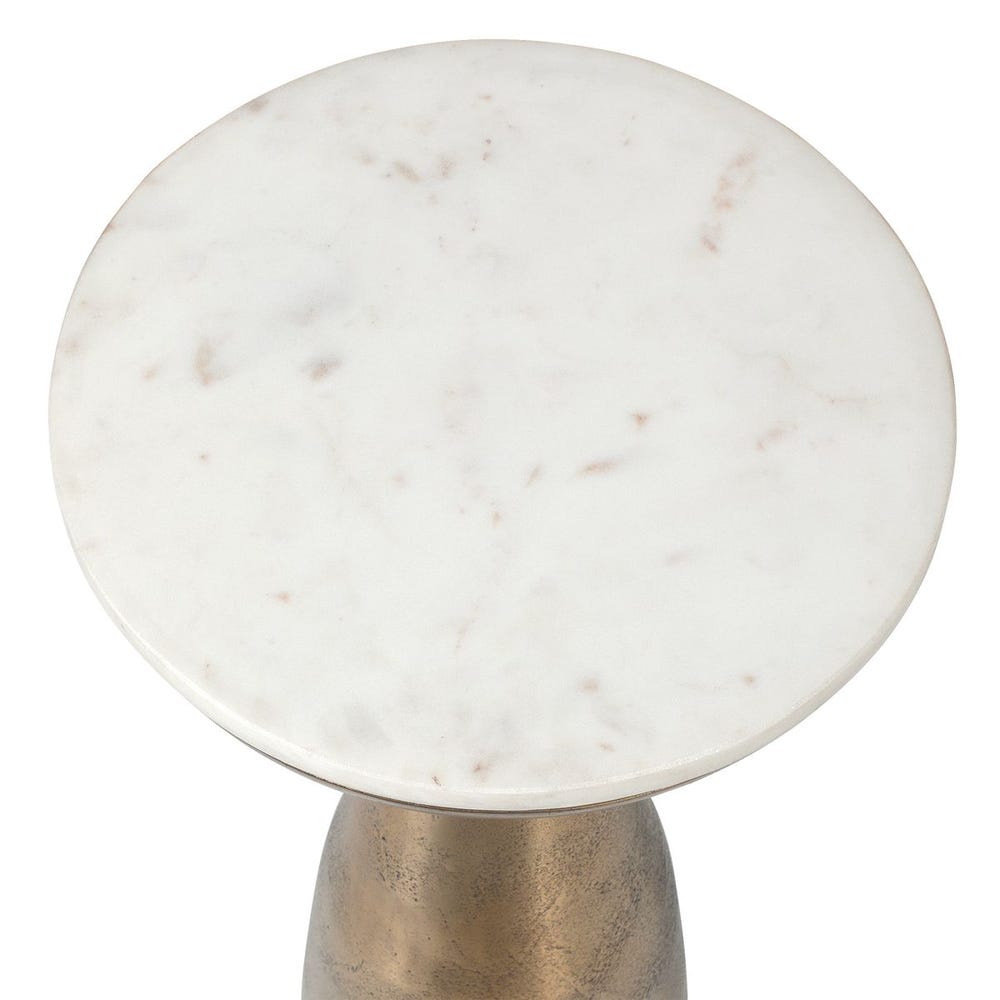 SKU - UT50250Torin Marble & Brass Drink Table – White Marble Top with Sleek Brass-Finished Aluminum Base for Luxe Accent Spaces