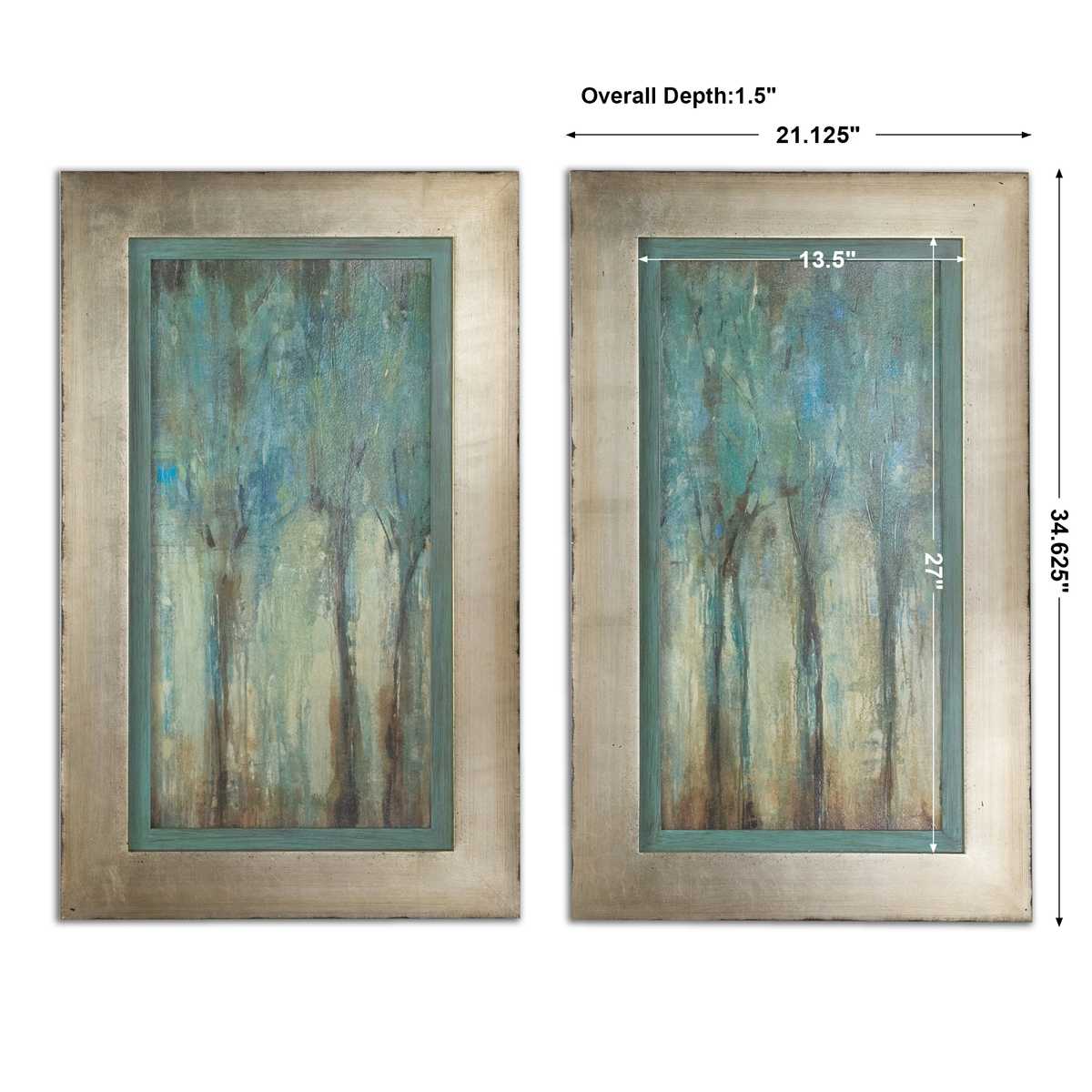 SKU - UT41410Whispering Wind Oil Reproductions, Set of 2 – Modern Landscape Wall Art with Silver Leaf Frames, 35" Tall