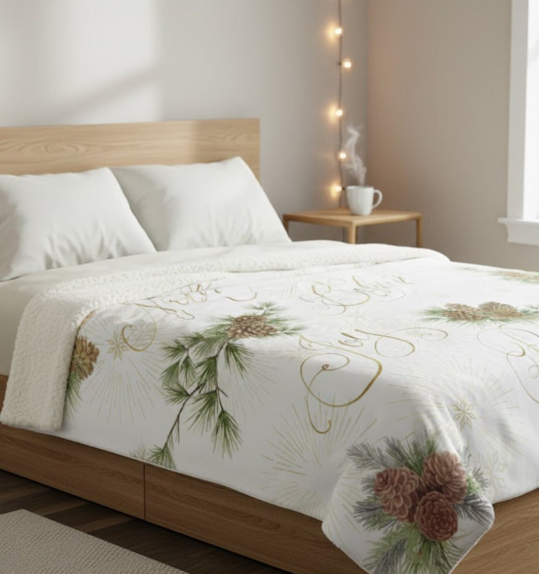 Embrace the comfort and beauty of the season with the Winter Pine Sherpa Fleece Throw. Measuring 50x60 inches, this soft and cozy throw is made from 100% polyester, featuring a plush fleece top and warm Sherpa reverse. The elegant pine design brings a peaceful, nature-inspired touch to your holiday décor. Perfect for curling up on the couch, layering on your bed, or gifting to loved ones, this throw combines seasonal style with everyday comfort. Add the Winter Pine Sherpa Fleece Throw to your living space for a warm, festive, and inviting atmosphere throughout the winter months.