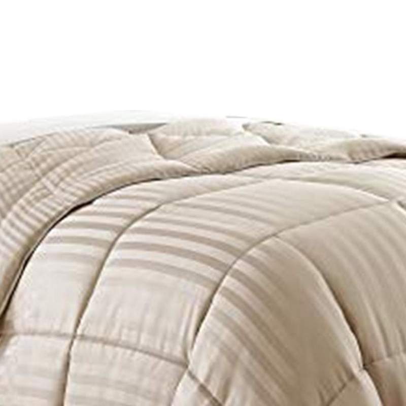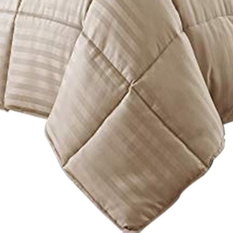 Benzara Cork Twin Comforter with Vertical Stripes and Stitched Details, Beige
