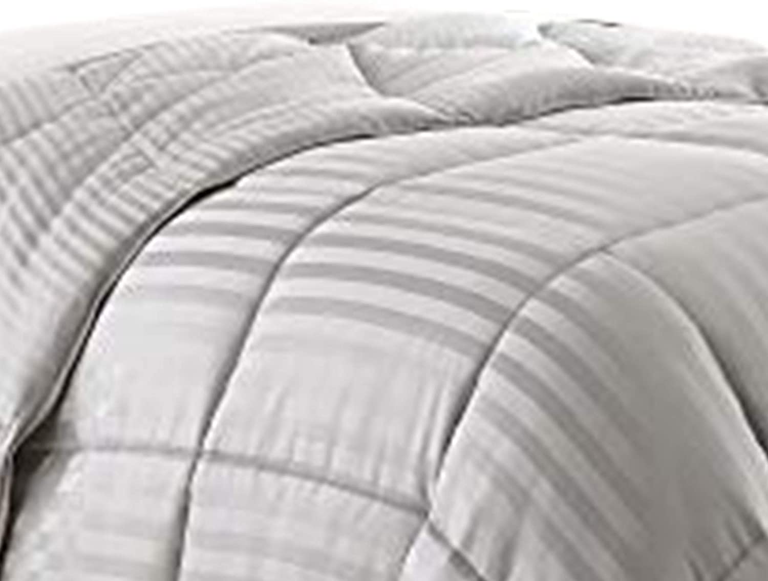 Benzara Cork Twin Comforter with Vertical Stripes and Stitched Details, Gray