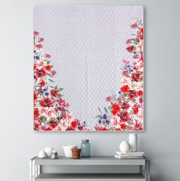 Wrap yourself in timeless romance with the Lexi Throw Quilt, where delicate pinstripes and blooming posies meet in a charming garden-inspired design. Featuring soft red, pink, violet blue, and green floral borders set against a classic pinstripe ground, this quilt brings the serene elegance of an English rose garden into your home.