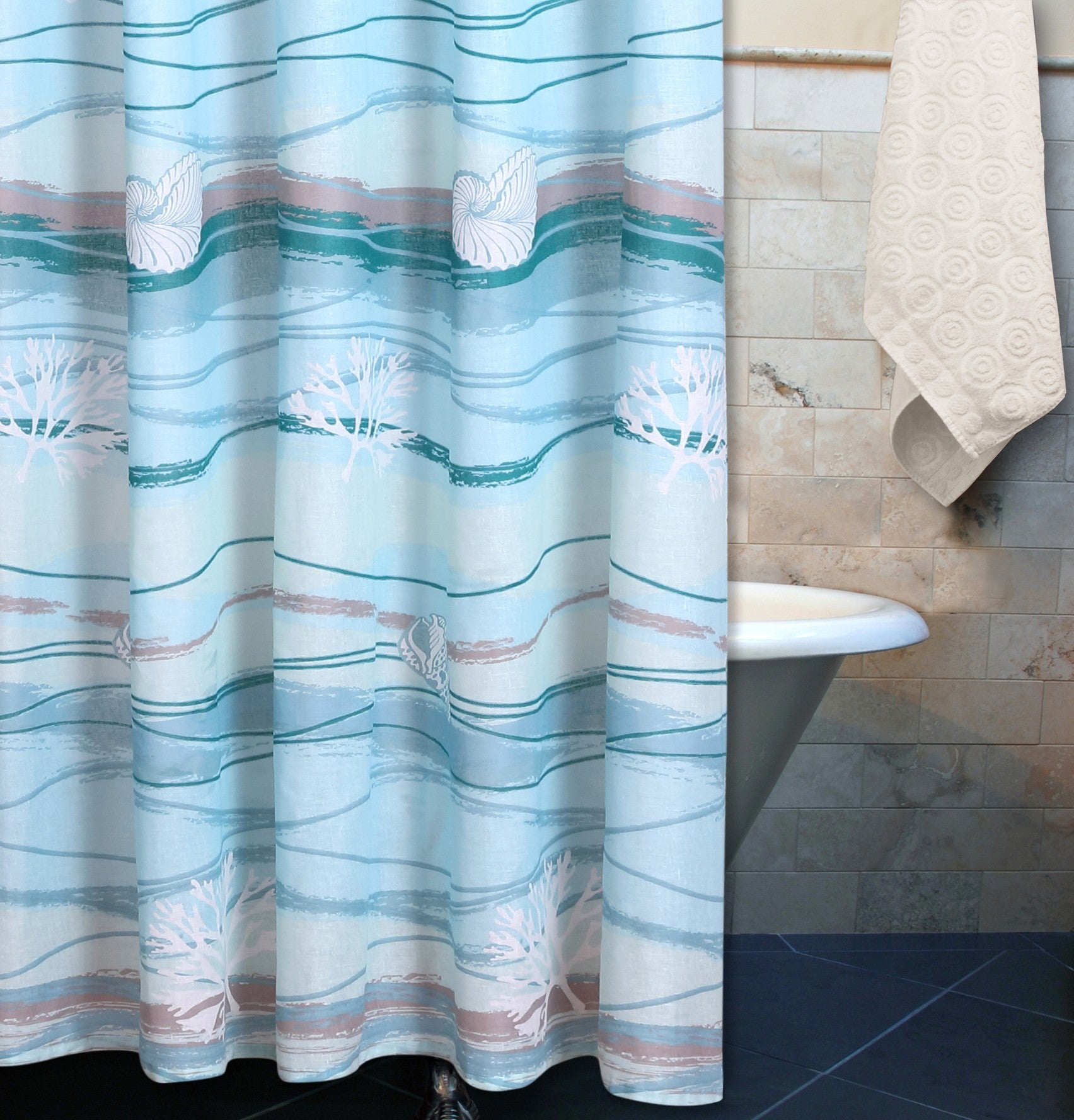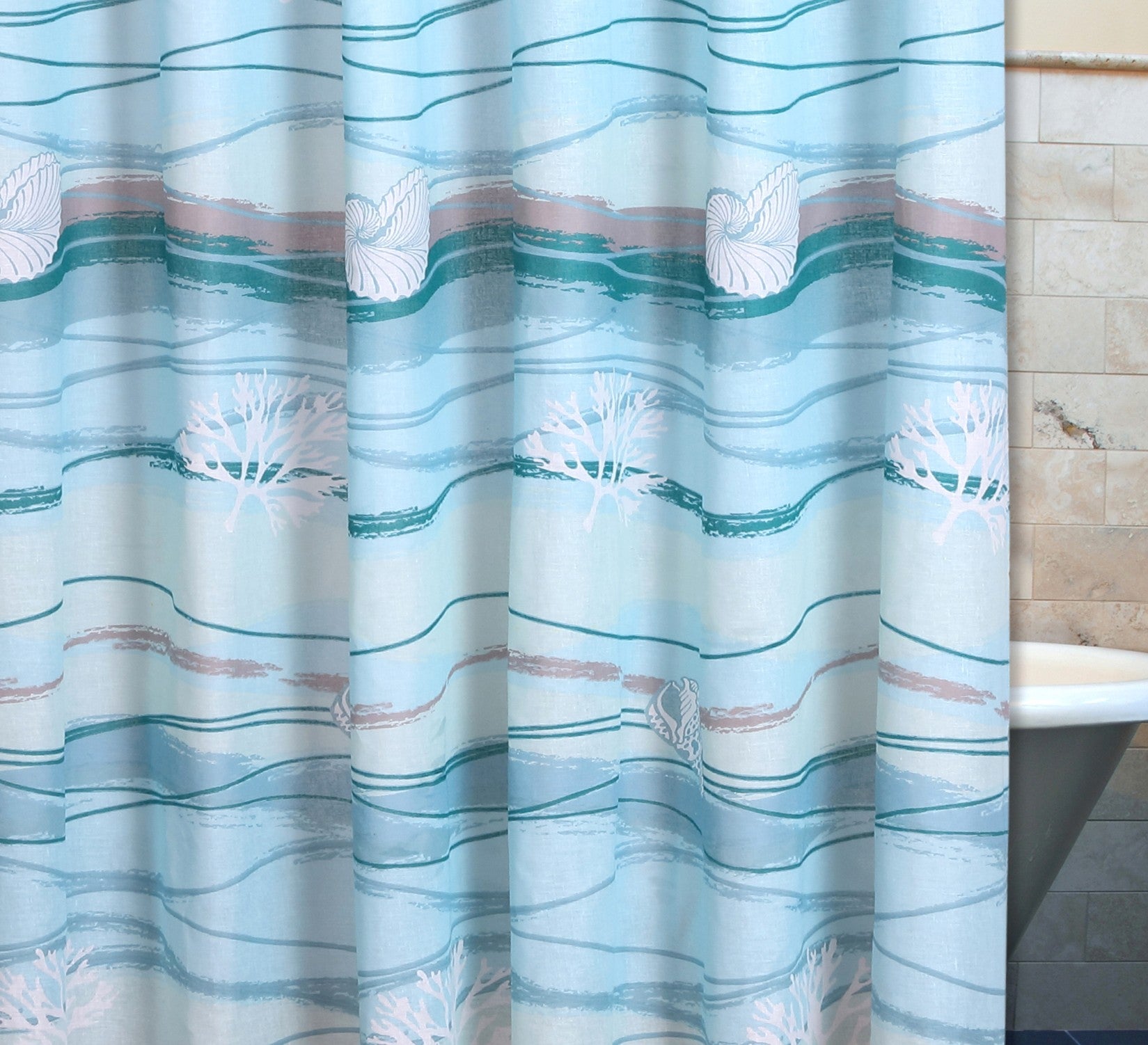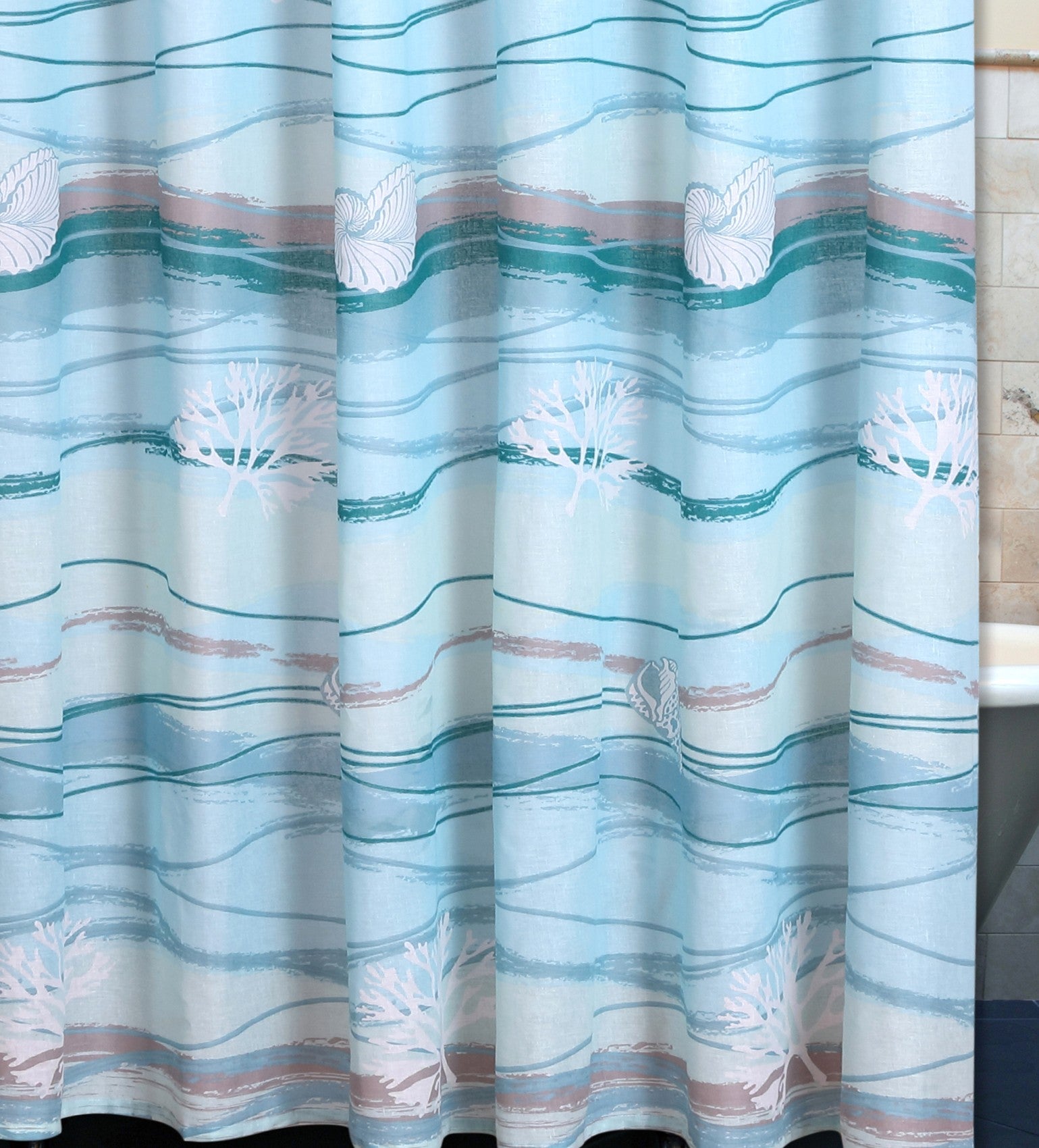 SKU - GL-1512ASHWMaui Multi Shower Curtain Coastal Seashell Coral Print 72x72 Inches