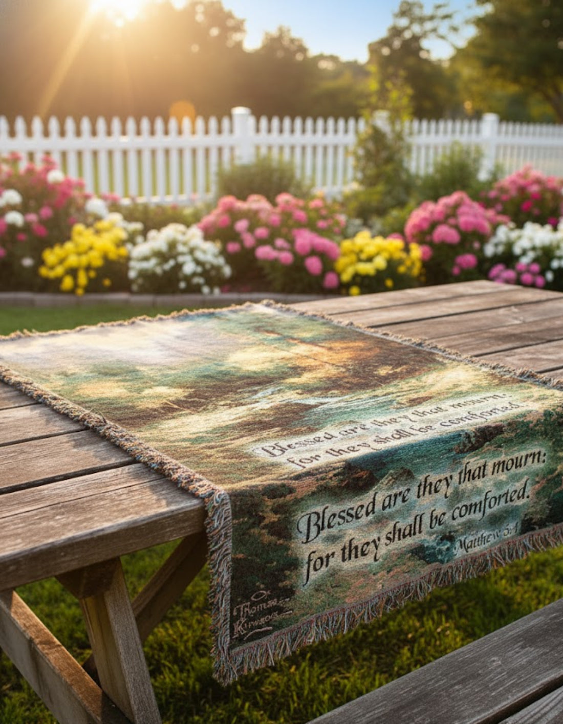 Embrace the serenity of nature with the Manual Woodworkers Creekside Trail Tapestry Throw. Crafted from 100% cotton and measuring 50 inches wide by 60 inches long, this beautifully woven throw captures the calm of a quiet creekside trail paired with an uplifting verse. Whether used as a comforting wrap, elegant sofa accent, or spiritual wall hanging, this design brings the beauty of the outdoors and a sense of peace into your living space.