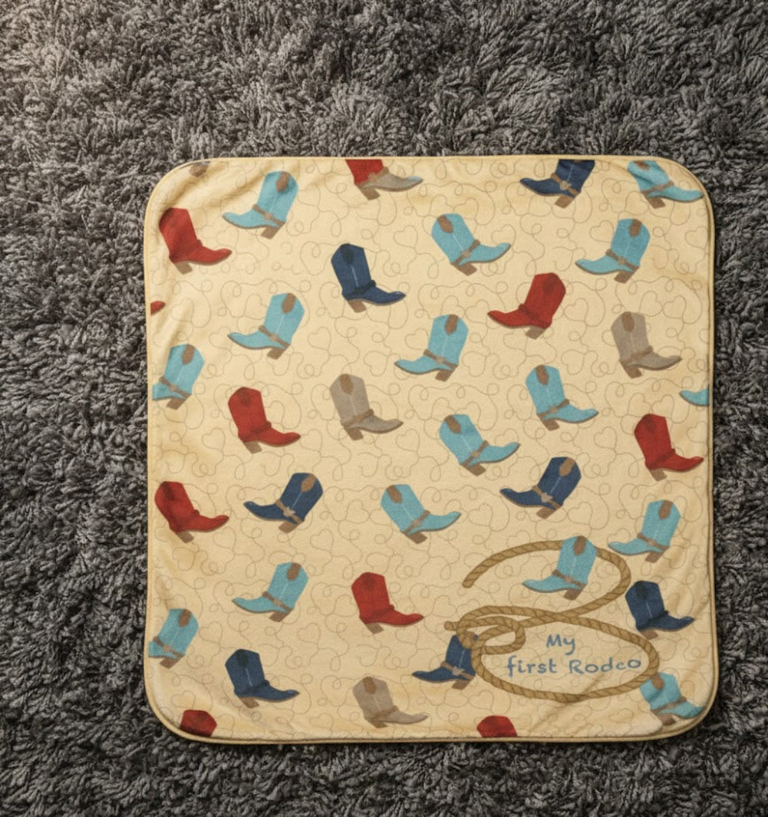 Polyester Throw MY FIRST RODEO Blue Boots – 30x40 Inch by Manual Woodworkers