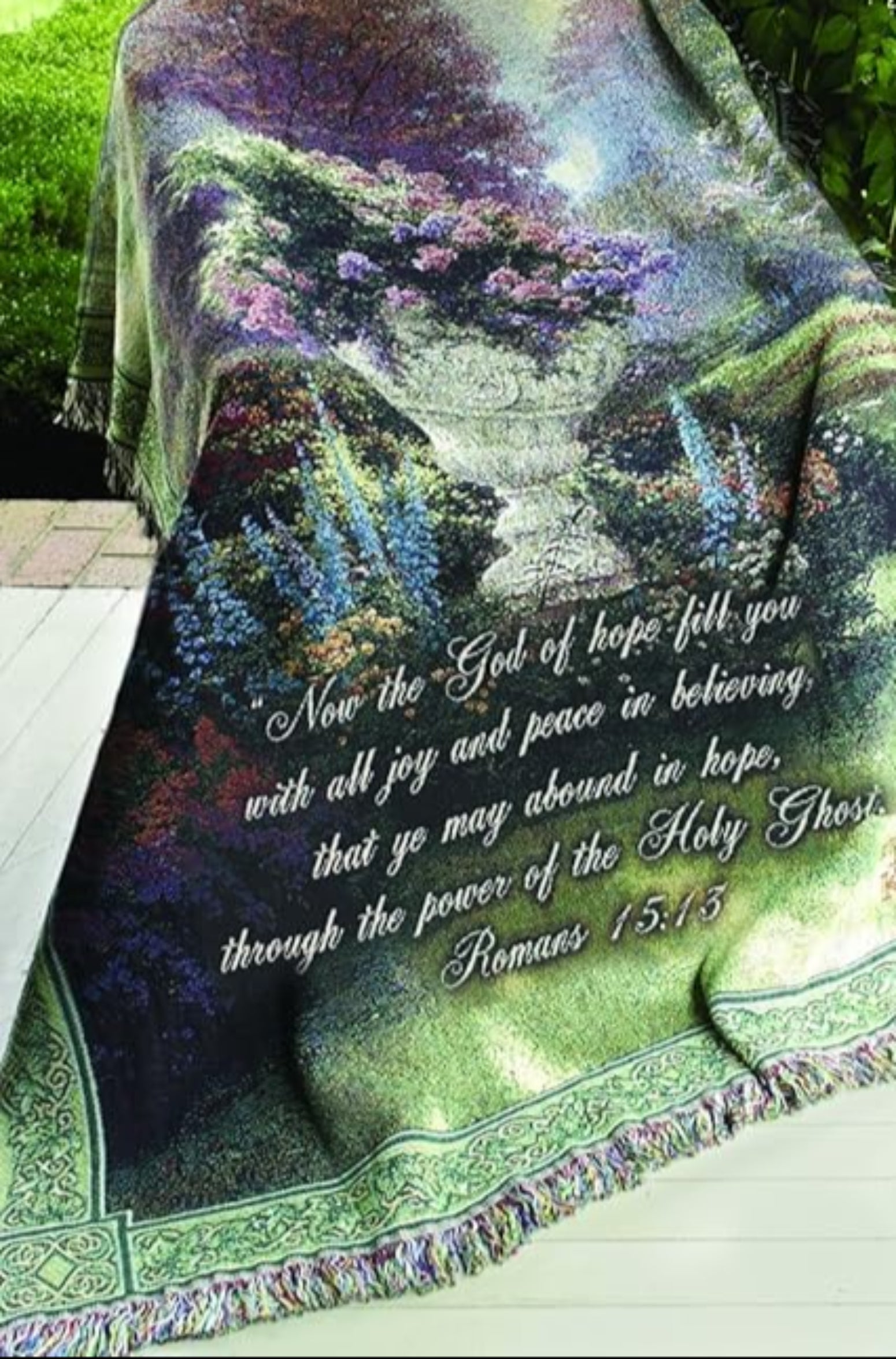 Cotton Tapestry Throw THE GARDEN OF HOPE W/VERSE – 50x60 Inch by Manual Woodworkers