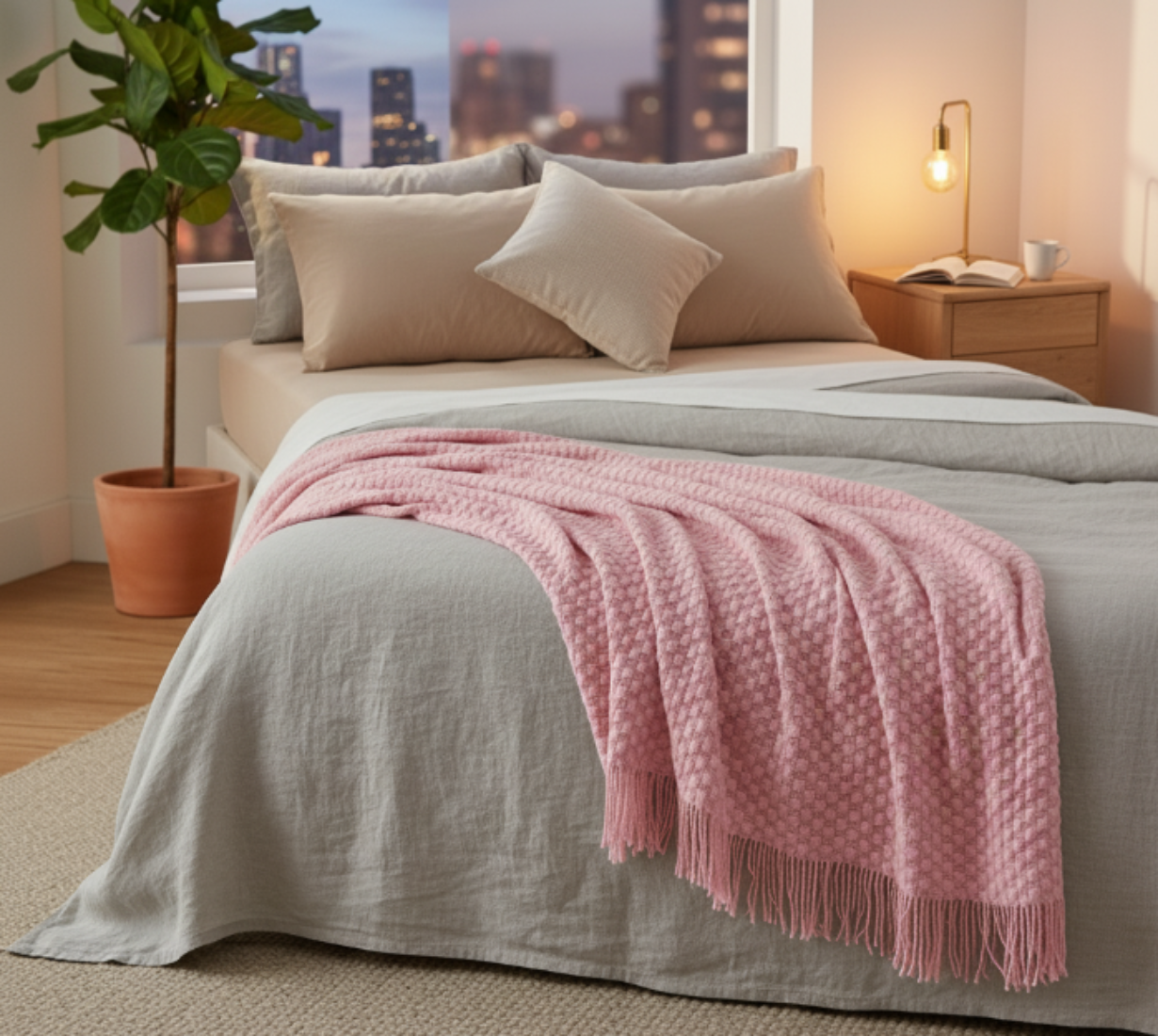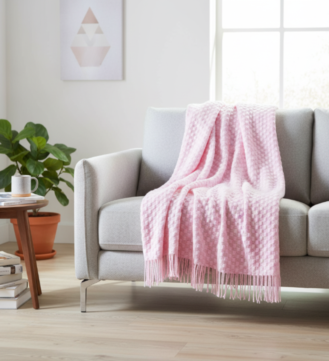 Infuse your home with soft charm and everyday comfort with the Manual Woodworkers Pink Acrylic Throw . Designed in a gentle pink hue and sized at 50 x 60 inches, this lightweight throw adds a playful yet elegant touch to any room. Woven from 100% acrylic, it offers a cozy feel that’s perfect for layering over a couch, chair, or bed. Whether used for snuggling during movie nights or styled as a decorative accent, this throw brings warmth, softness, and a pop of color. Durable, fade-resistant, and easy to maintain — it’s the perfect blend of function and flair.