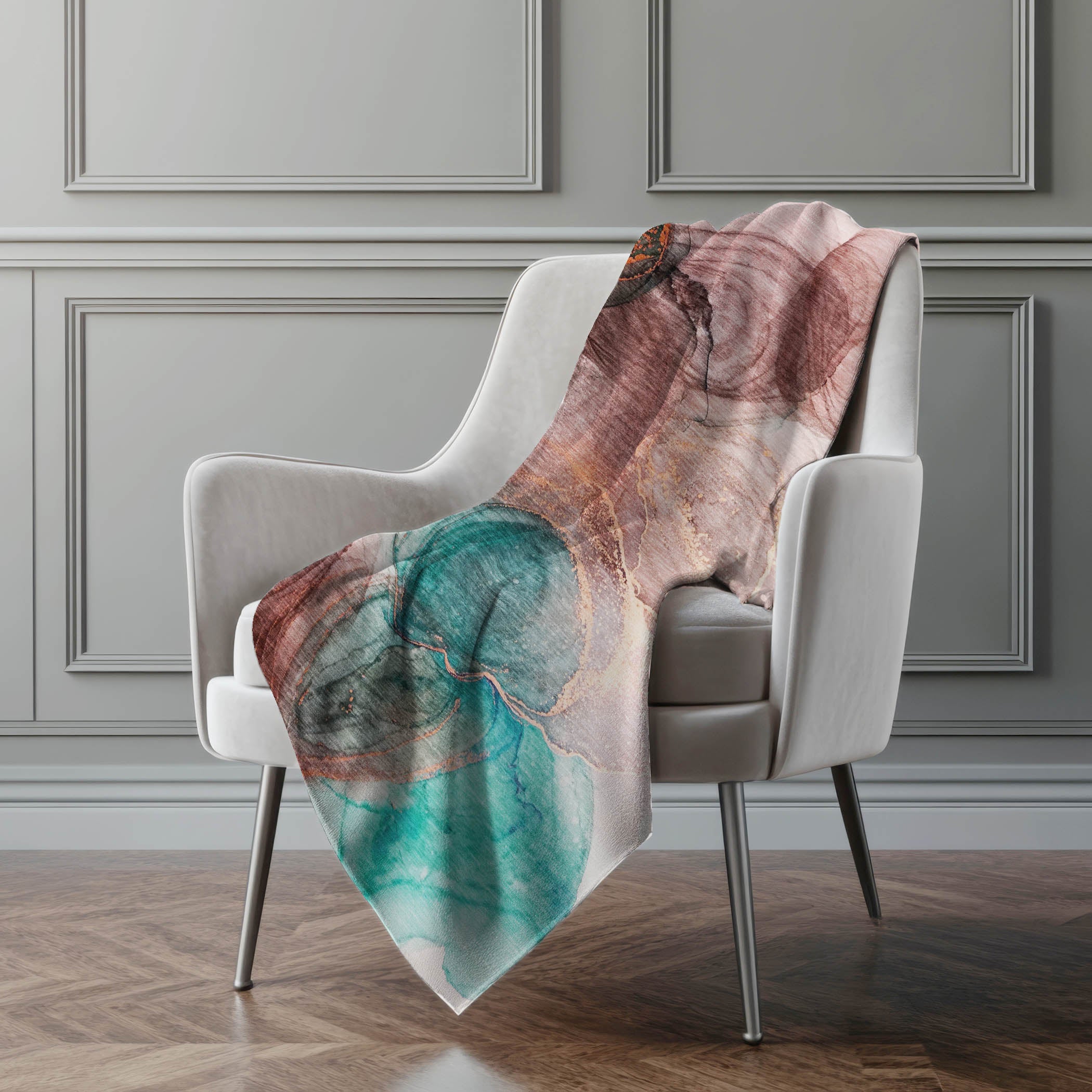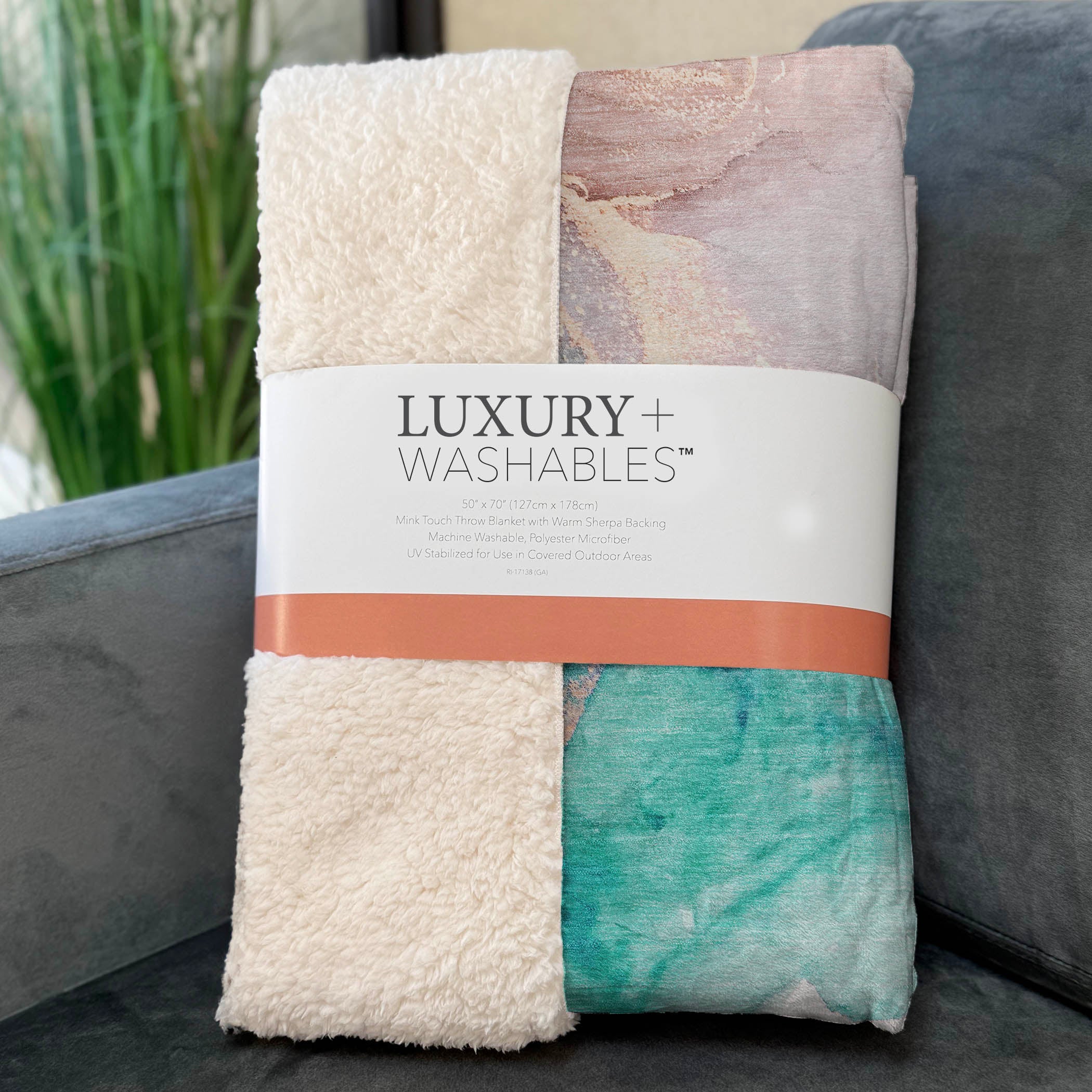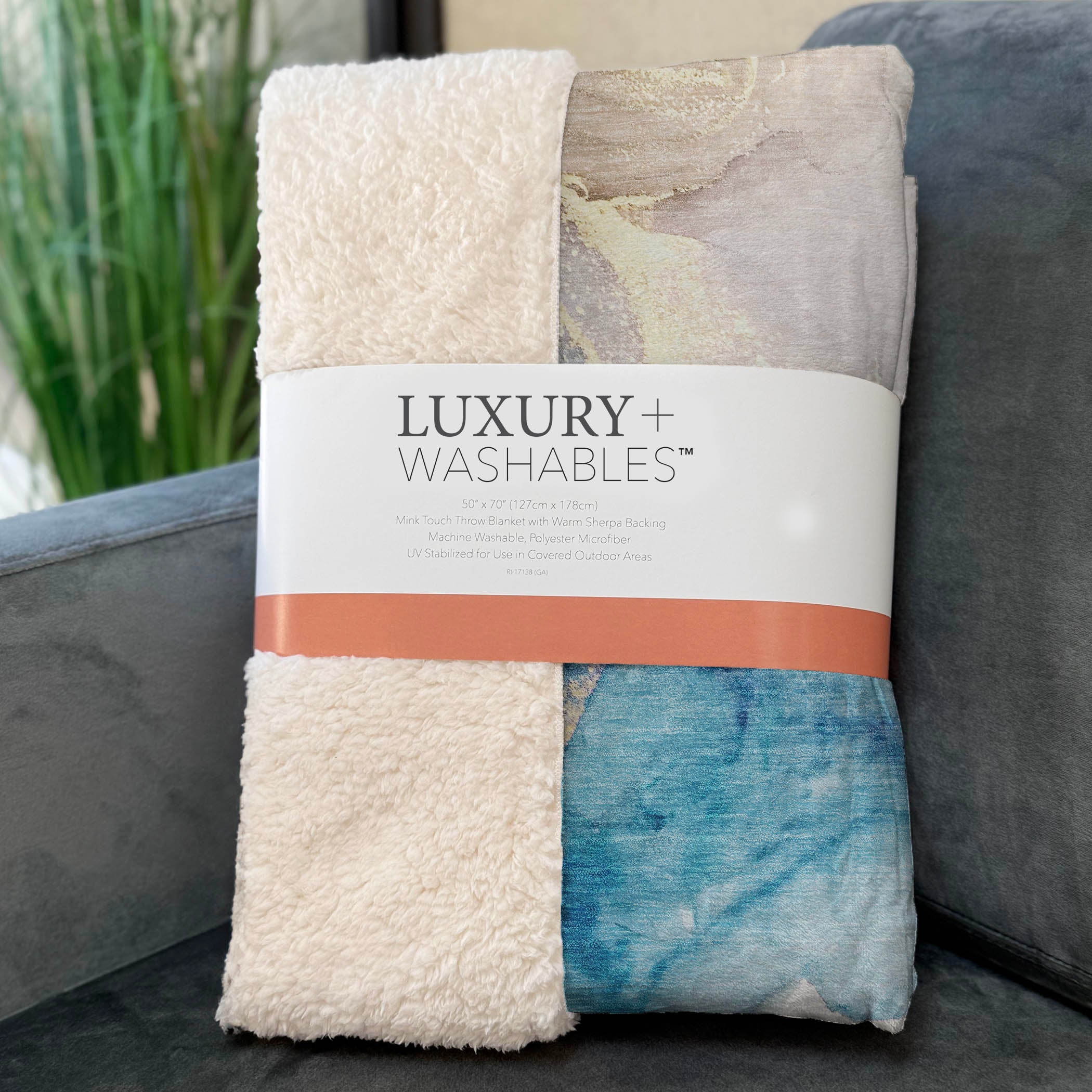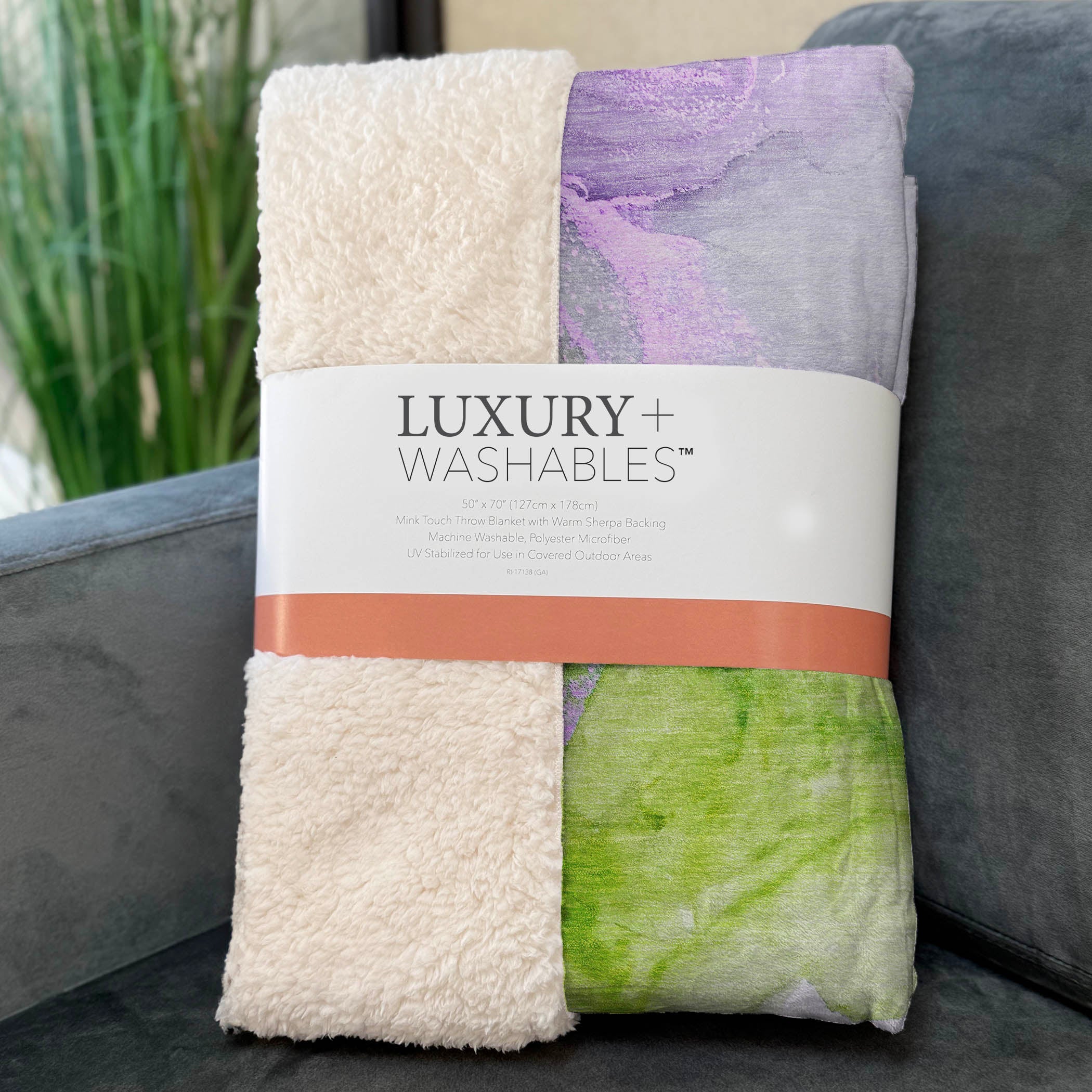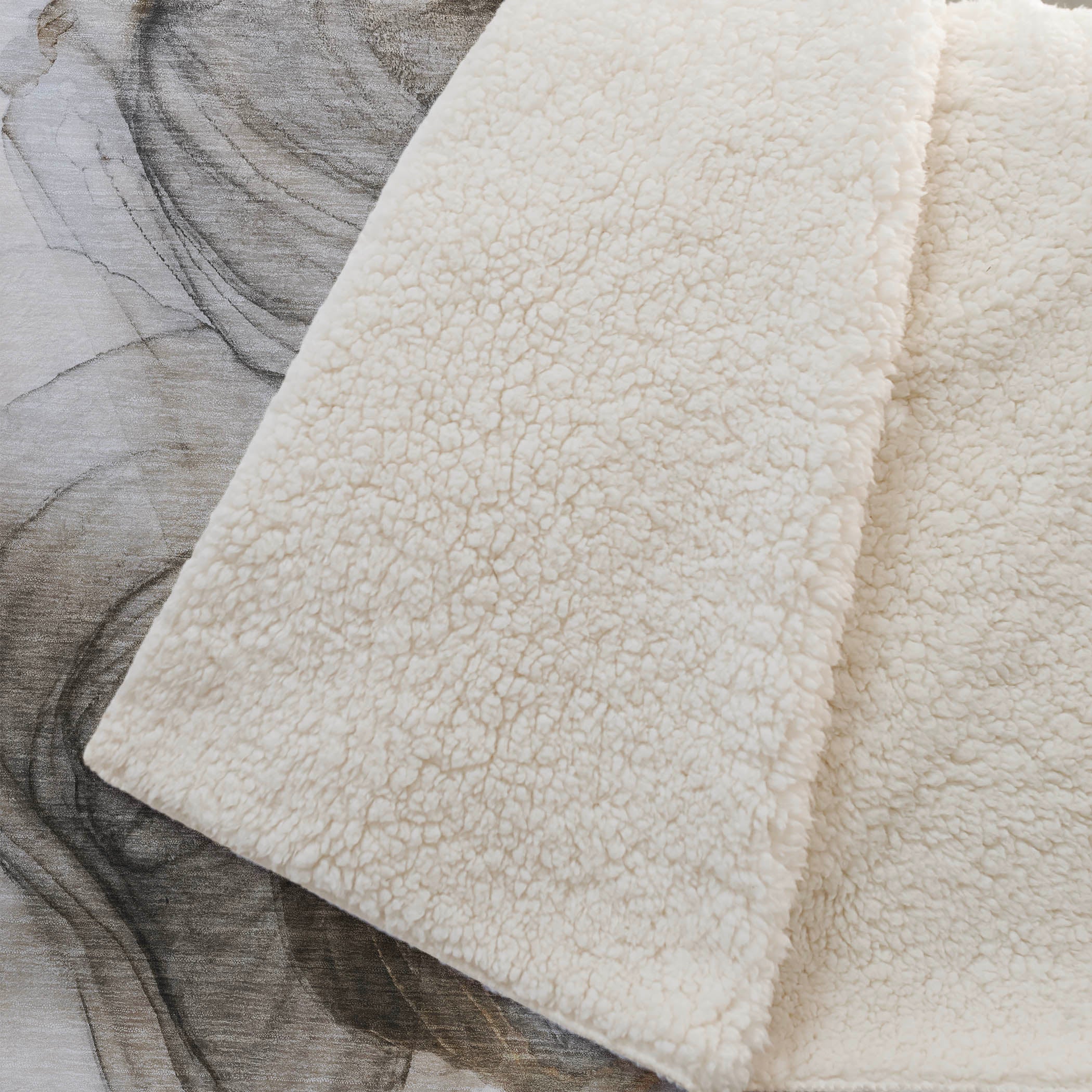 Adorn your living space with the tranquil, modern appeal of soft puddle shapes designed to complement transitional interiors. Generously sized at 50" x 70", this throw combines a luxuriously soft-touch front with a warm High Pile Fleece backing, creating a cocoon of everyday comfort. Crafted from fade-resistant polyester microfiber, it maintains vibrant color for indoor and covered outdoor use. Designed for convenience, its premium machine washable construction ensures effortless care and lasting softness.