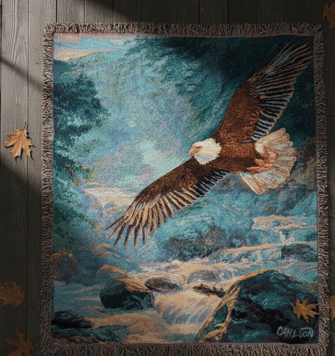 SKU - MWWATAMJ50x60 Inch Cotton Tapestry Throw – AMERICAN MAJESTY by Manual Woodworkers