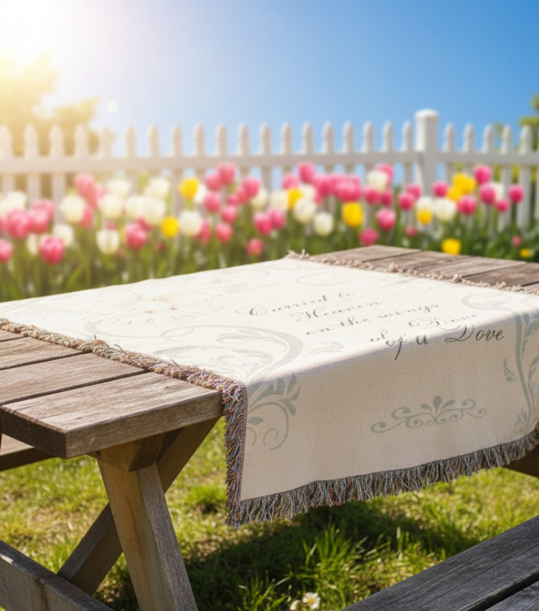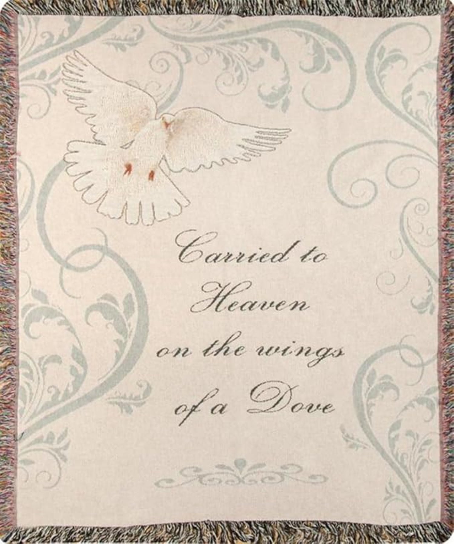 Wrap yourself in comfort and peace with the Manual Woodworkers Carried to Heaven Tapestry Throw. Woven from premium 100% cotton yarn and measuring 50 inches wide by 60 inches long, this heartfelt design portrays the spiritual journey of a soul ascending to peace—often symbolized by angels, doves, and radiant skies. Perfect for remembrance, memorials, or daily inspiration, this throw offers both physical warmth and emotional comfort. A beautiful addition to prayer rooms, reading corners, or quiet spaces of reflection.