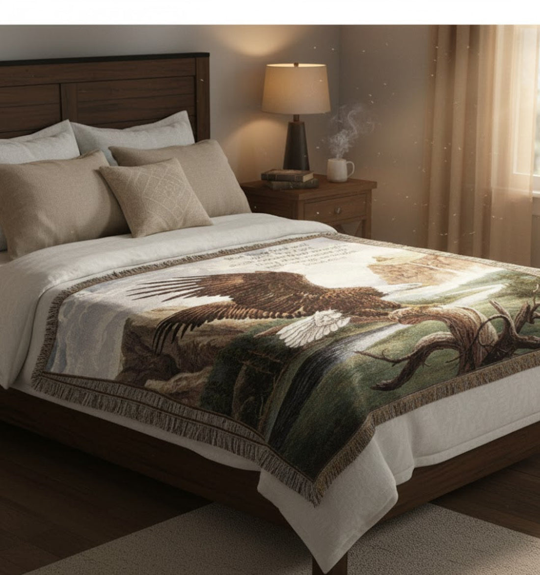 The Manual Woodworkers Inspirational Collection Tapestry Throw with Verse, Freedom by Linda Pickens brings warmth, artistry, and spiritual meaning into your home. Woven from 100% cotton and measuring 50 × 60 inches, this tapestry throw highlights Linda Pickens’ heartfelt patriotic artwork paired with an inspiring verse. Its soft texture and fringed edges add a touch of timeless craftsmanship, making it both a decorative accent and a comforting cover. Perfect for year-round use, this throw works beautifully as a cozy blanket, an inspirational wall hanging, or a thoughtful gift for loved ones who value faith, freedom, and inspiration.
