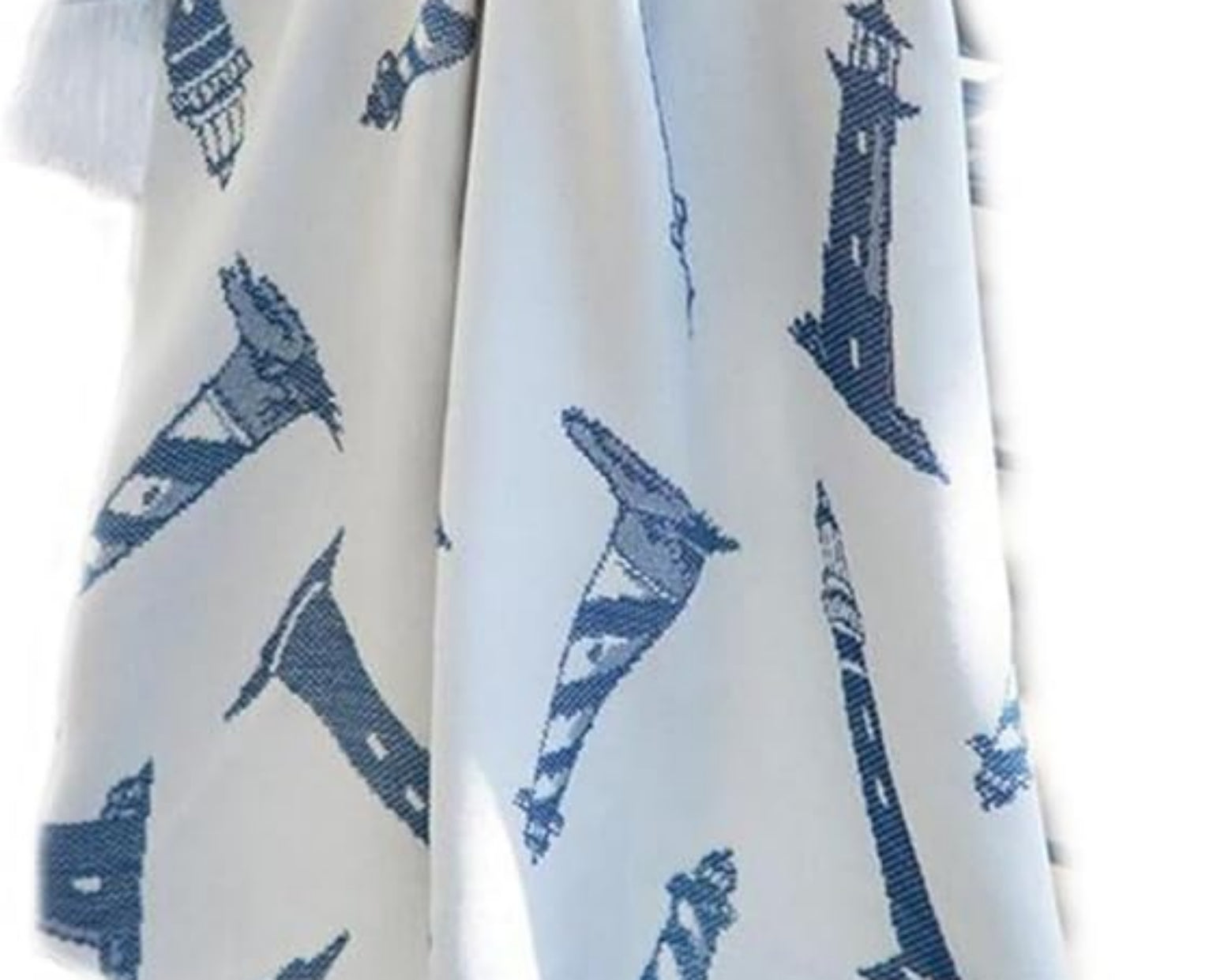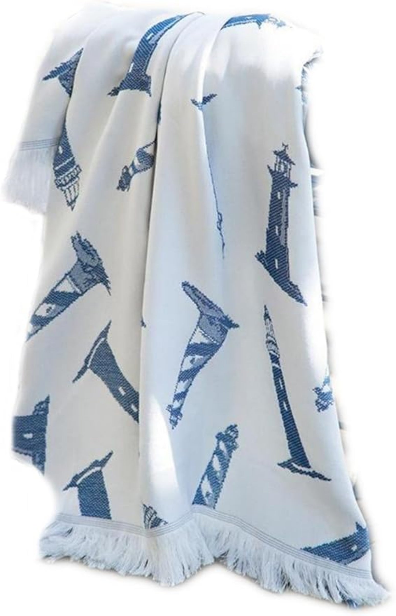 Bring the beauty of the seaside into your home with the Manual Woodworkers Lighthouse Navy Throw. Measuring 48 × 60 inches, this rayon woven blanket showcases a striking navy lighthouse design that evokes peace, guidance, and coastal charm. Perfect for draping over a sofa, chair, or bed, it blends decorative appeal with soft comfort. Whether used for everyday coziness or as a nautical accent piece, this throw is a timeless addition to your home décor.