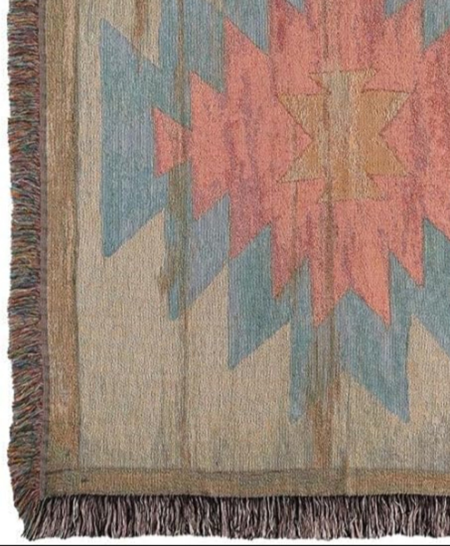 Add a touch of Southwestern charm to your home with the Rosewood Ranch Cotton Tapestry Throw Blanket. Measuring 50 × 60 inches, this woven throw features a warm beige and coral color palette with traditional Southwestern patterns that bring rustic elegance to any room. Crafted from 100% cotton and finished with decorative fringe edges, this blanket is both stylish and functional—perfect as a cozy layer for cool evenings or as a striking accent draped over a sofa, chair, or bed.