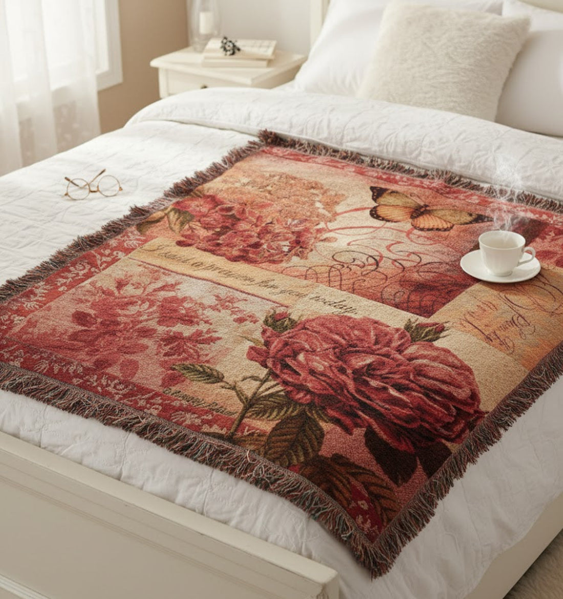 - Finish: Decorative fringe edges for a classic look