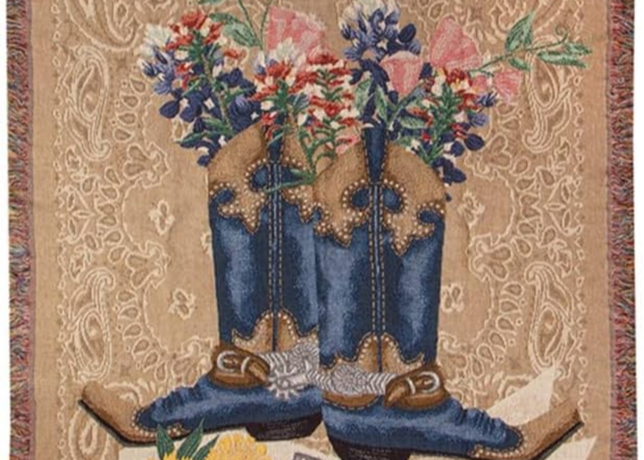Rustic Wildflower Throw – Texas-Inspired Woven Tapestry Blanket with Fringe