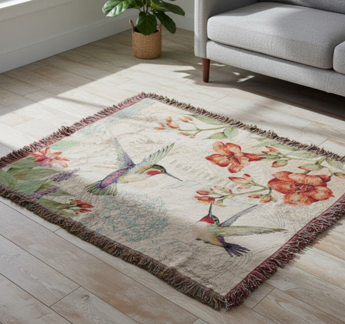 Nature Hummingbirds Woven Throw– 50x60 inch Cotton Accent by Manual Woodworkers