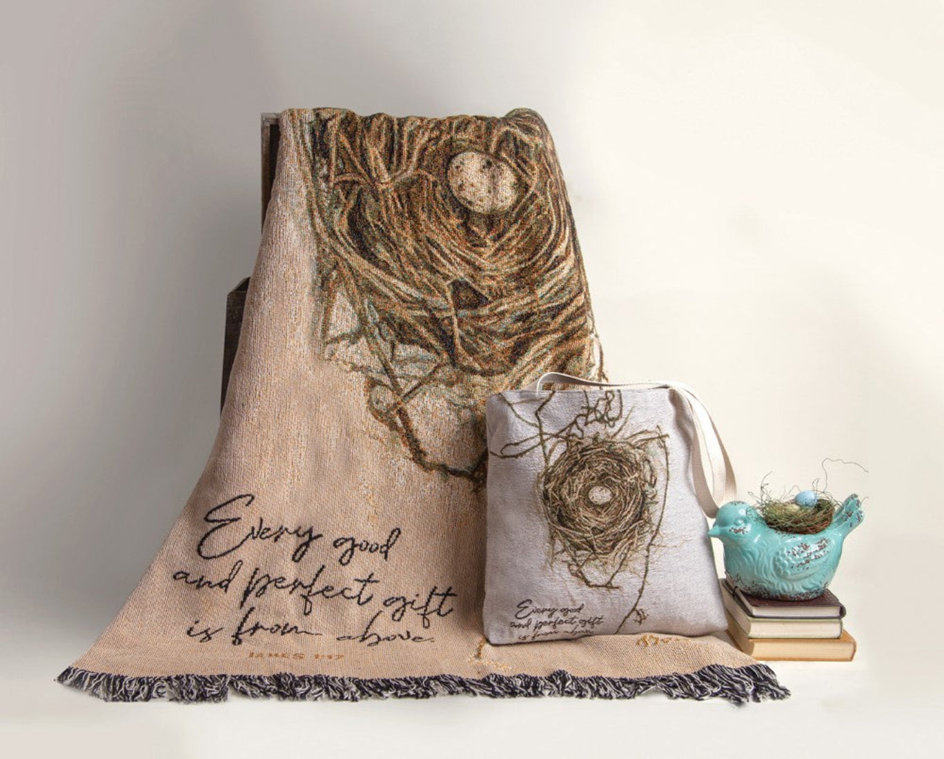 Celebrate faith and gratitude with the Nest Every Good and Perfect Gift 50x60 Inch Tapestry Throw. Woven from 100% cotton, this inspiring throw features a heartwarming verse reminding us of life’s blessings. The intricate nest design symbolizes love, warmth, and divine provision, making it an uplifting addition to any home. Perfect for draping over a sofa, chair, or bed, it adds comfort and spiritual beauty to your décor. Its soft yet durable texture ensures long-lasting quality, while its meaningful message makes it a thoughtful gift for family, friends, or any special occasion.