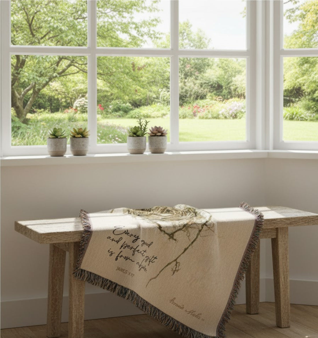 Nest Every Good and Perfect Gift 50x60 inch Throw Inspirational Tapestry by Manual Woodworkers