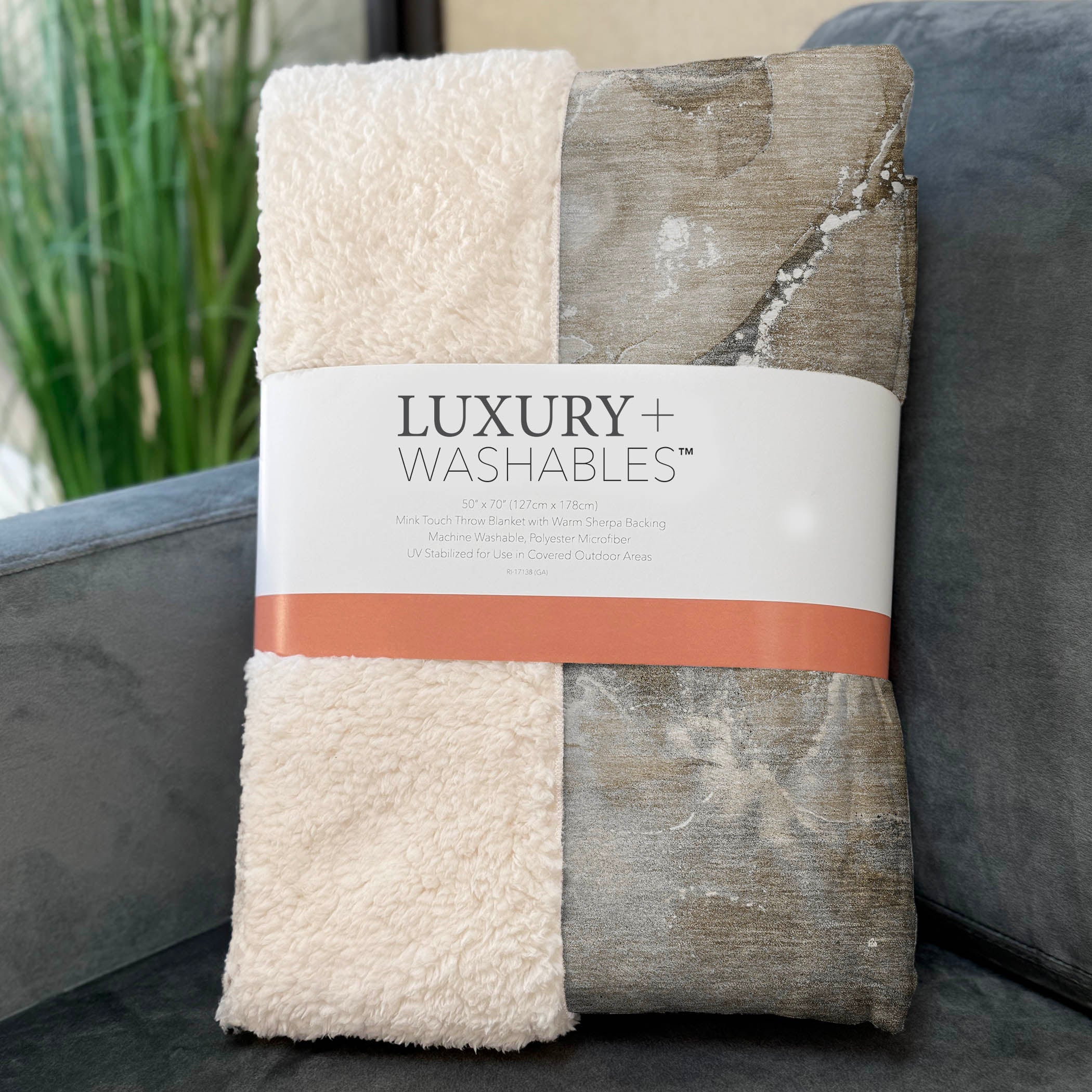 Wrap yourself in warmth with this 50" x 70" Faux Shearling Throw Blanket featuring a soothing watercolor design. The soft-touch front showcases blended light-to-dark tones, while the warm Faux Shearling backing delivers exceptional comfort. Crafted from 100% polyester microfiber, this throw is fade-resistant and suitable for indoor or covered outdoor use. Oversized for versatile layering on sofas and beds, it is machine washable for effortless care and everyday practicality.