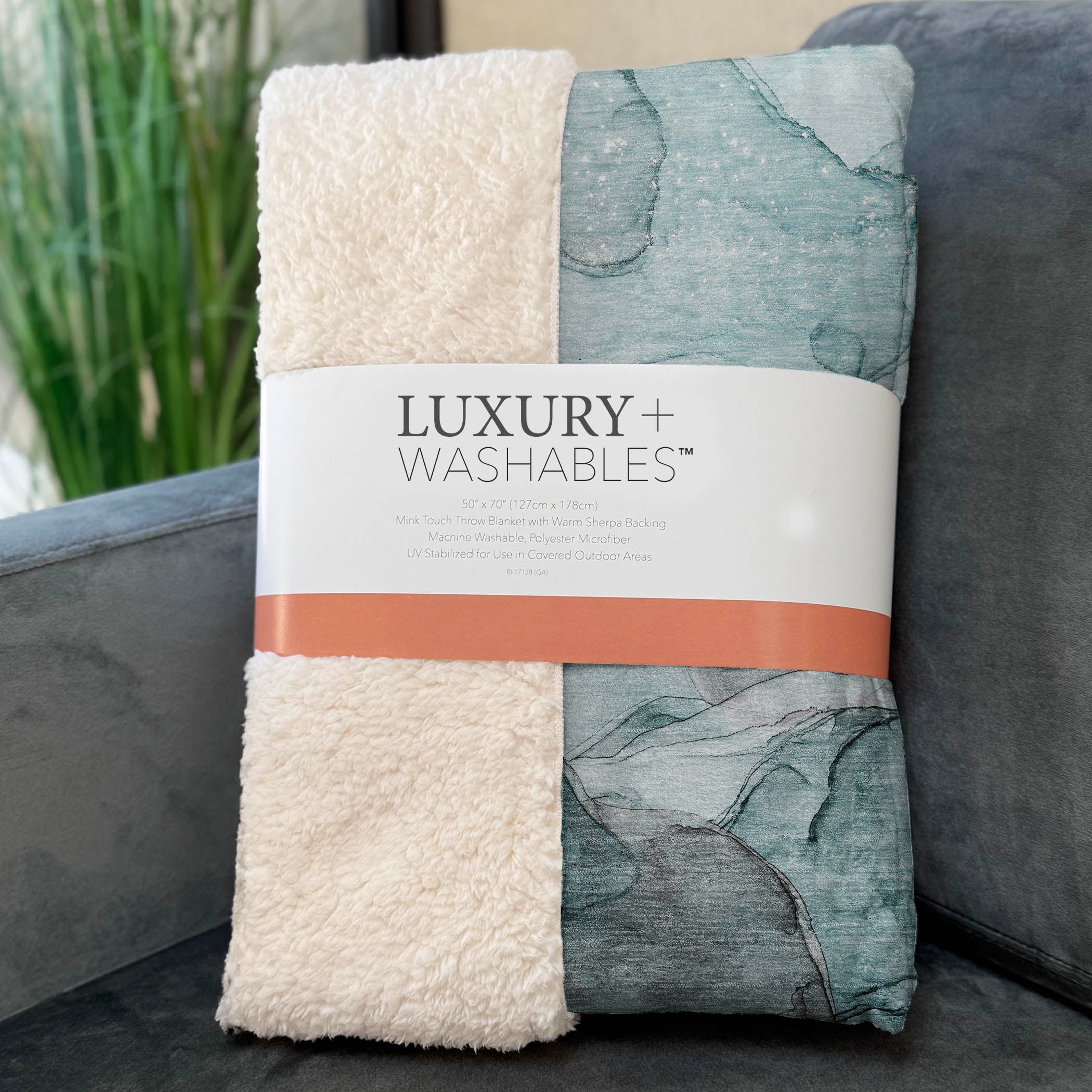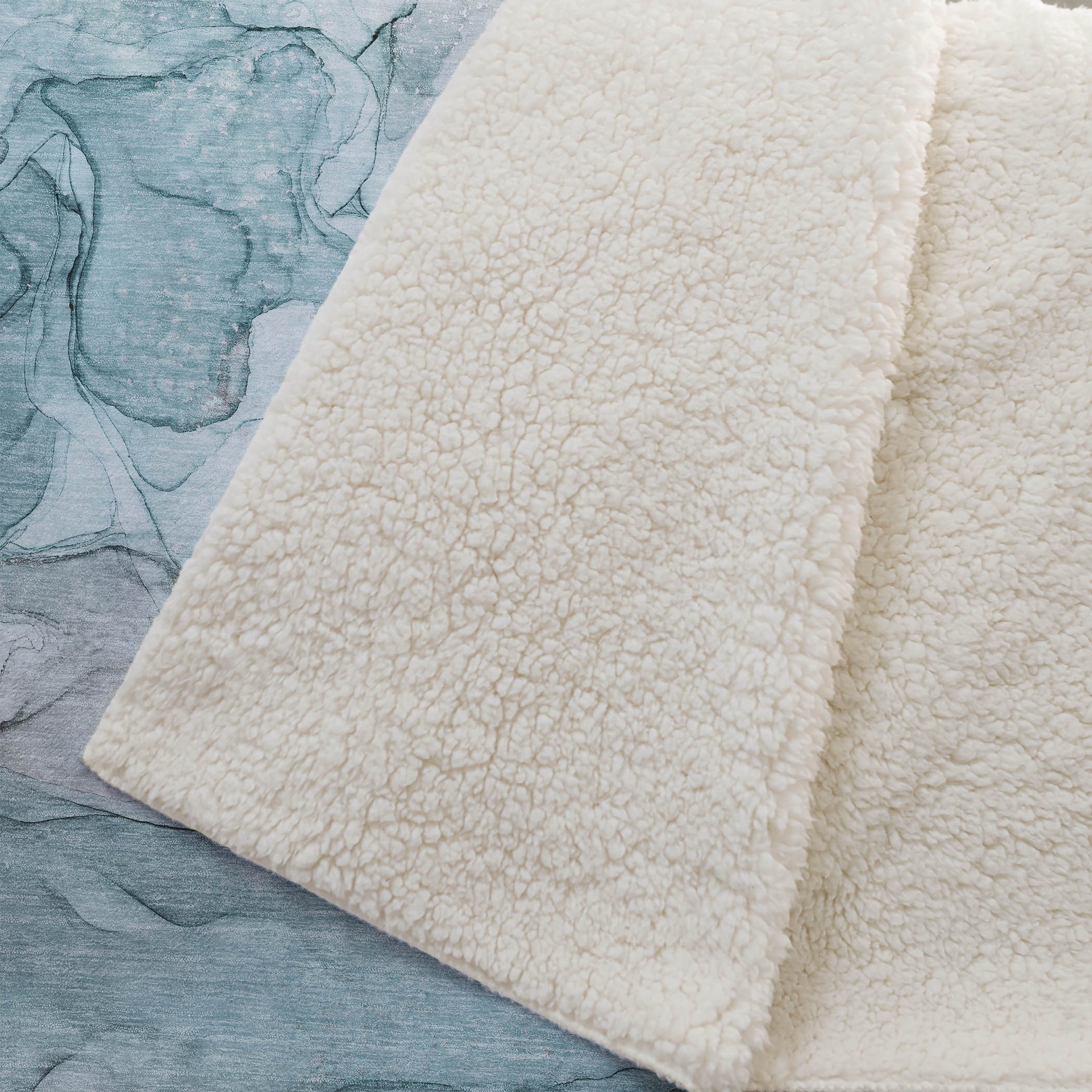 Watercolor Faux Shearling Throw Blanket measures 50" x 70" and features soft flowing hues designed to complement transitional décor. Crafted from 100% polyester microfiber, this machine-made throw includes a soft-touch front paired with a warm faux shearling backing for added comfort. The oversized rectangular shape provides generous coverage for sofas, beds, and lounge chairs. Fade-resistant construction supports use in indoor and covered outdoor settings while maintaining color vibrancy. Lightweight yet plush, it offers warmth without excessive bulk. Designed for convenience, this throw is machine washable, making it suitable for everyday use while maintaining its texture and softness over time.