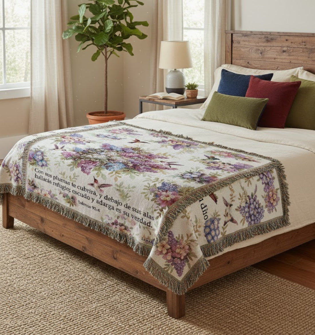Whisper Wings Spanish 50x60 Inch Tapestry Throw – Woven Inspirational Design by Manual Woodworkers
